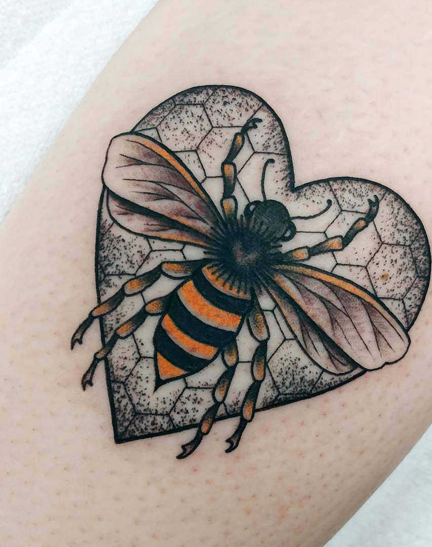 Bee tattoo by Zach at Signature Tattoo in Ferndale, MI