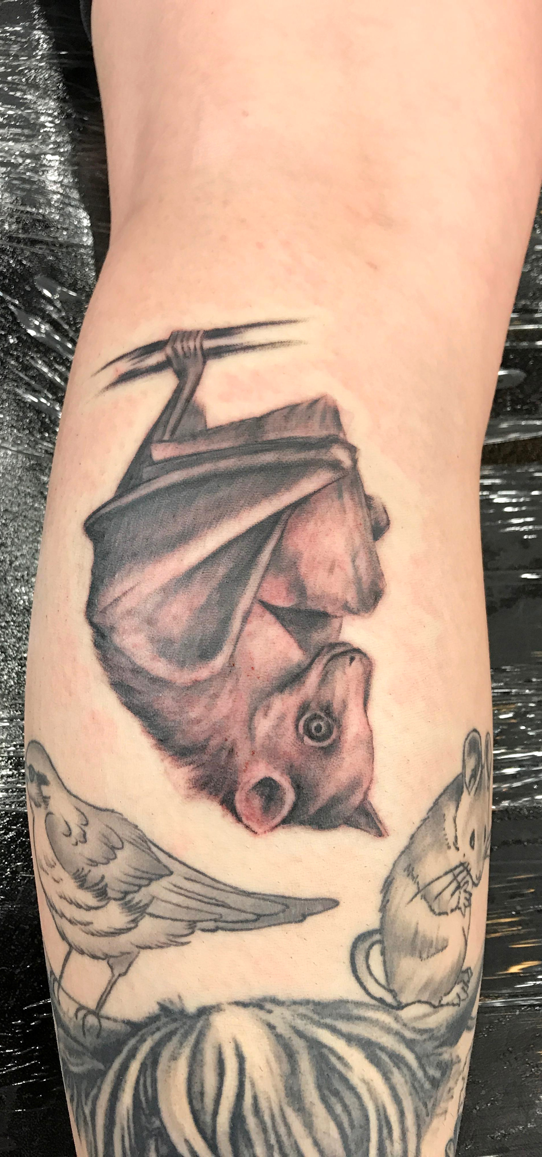 Bat tattoo. By Jacoba Kaufman at Jackalope Tattoo in Minneapolis, MN
