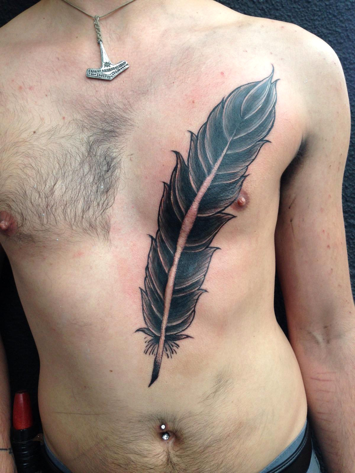 Feather tattoo. I found a way to incorporate a scar into something much more than that. Done by Kimb