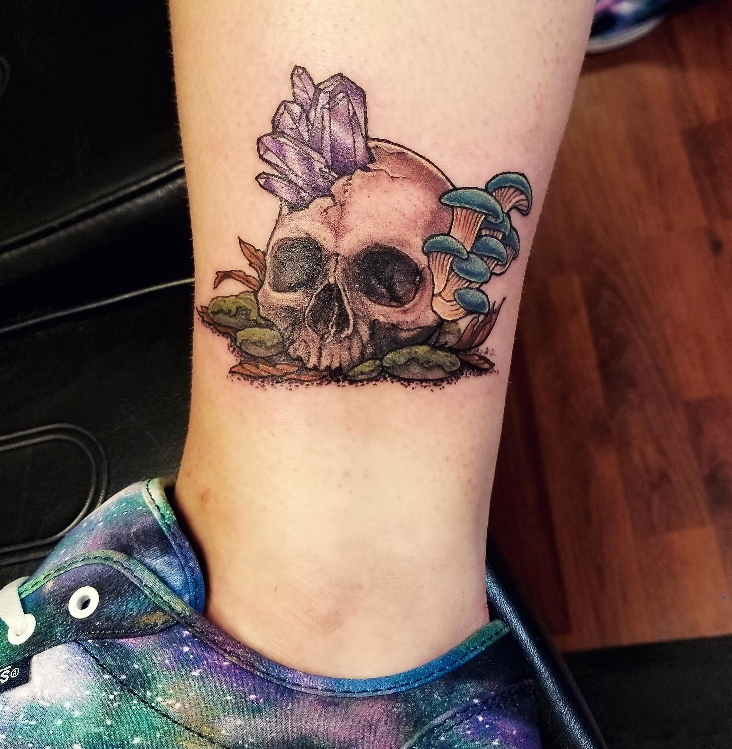Skull tattoo by Libby at 46&2 Tattoo in Fargo ND