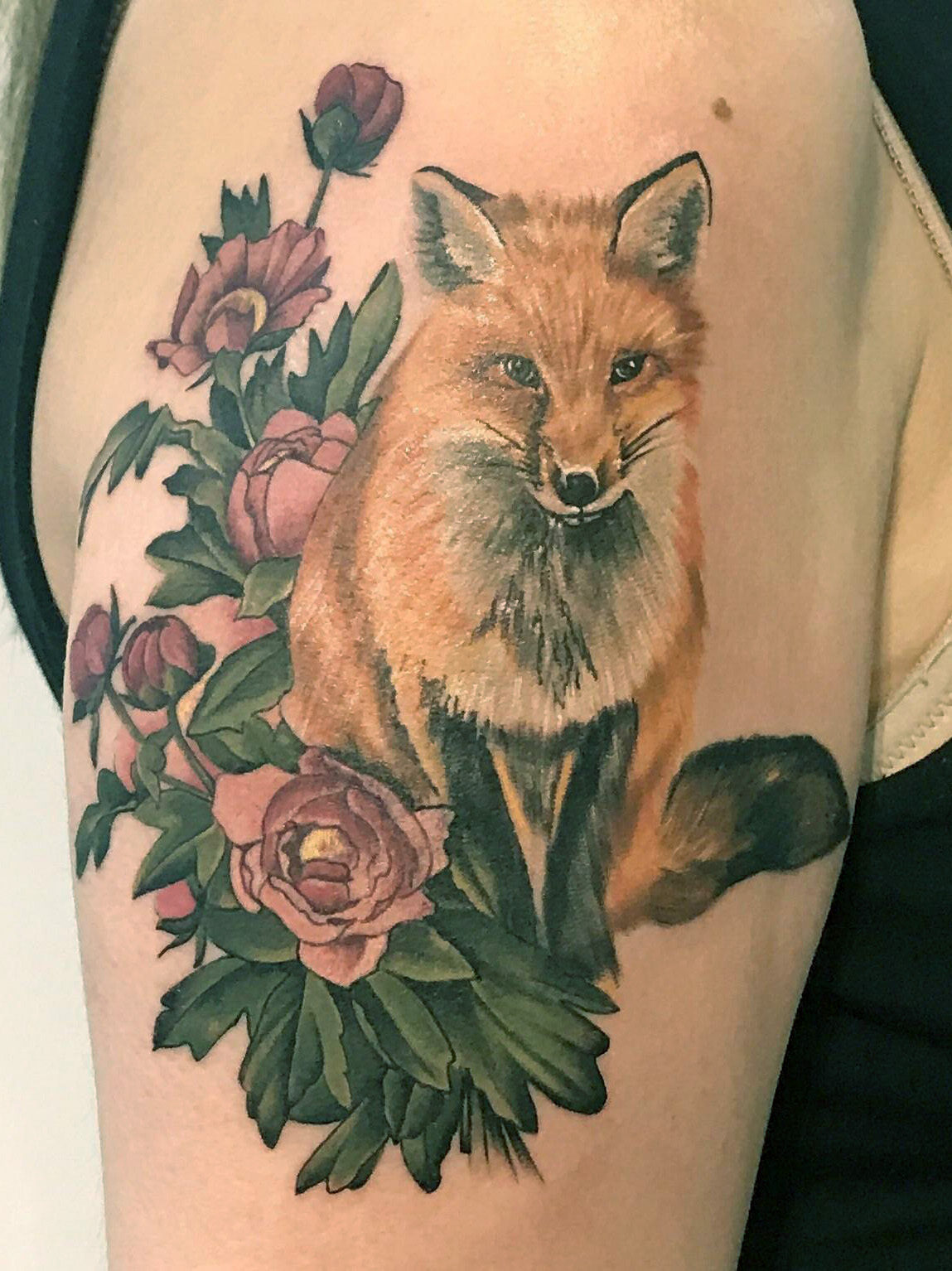 Fox and Flowers by Dia Moeller at Boston Tattoo Company in Medford, MA