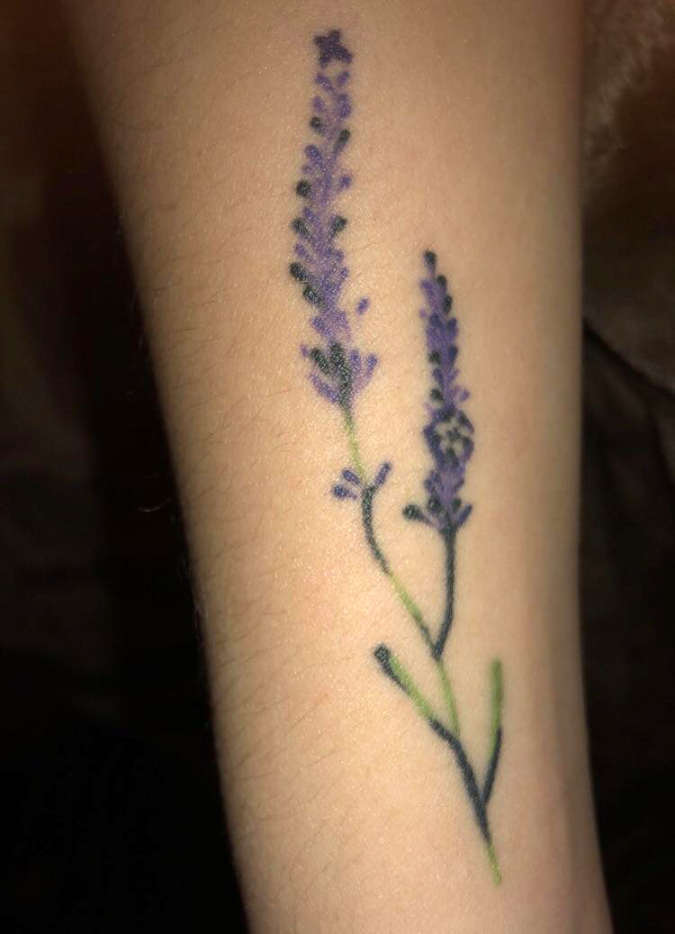 lavender watercolor done by mario davis at ink capital TK in peoria, IL #evamigtattoos #tattoo