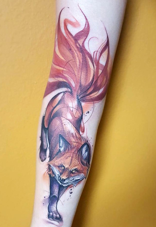 Fox tattoo by Jorell Elie at Outer Limits Tattoo, Long Beach, CA