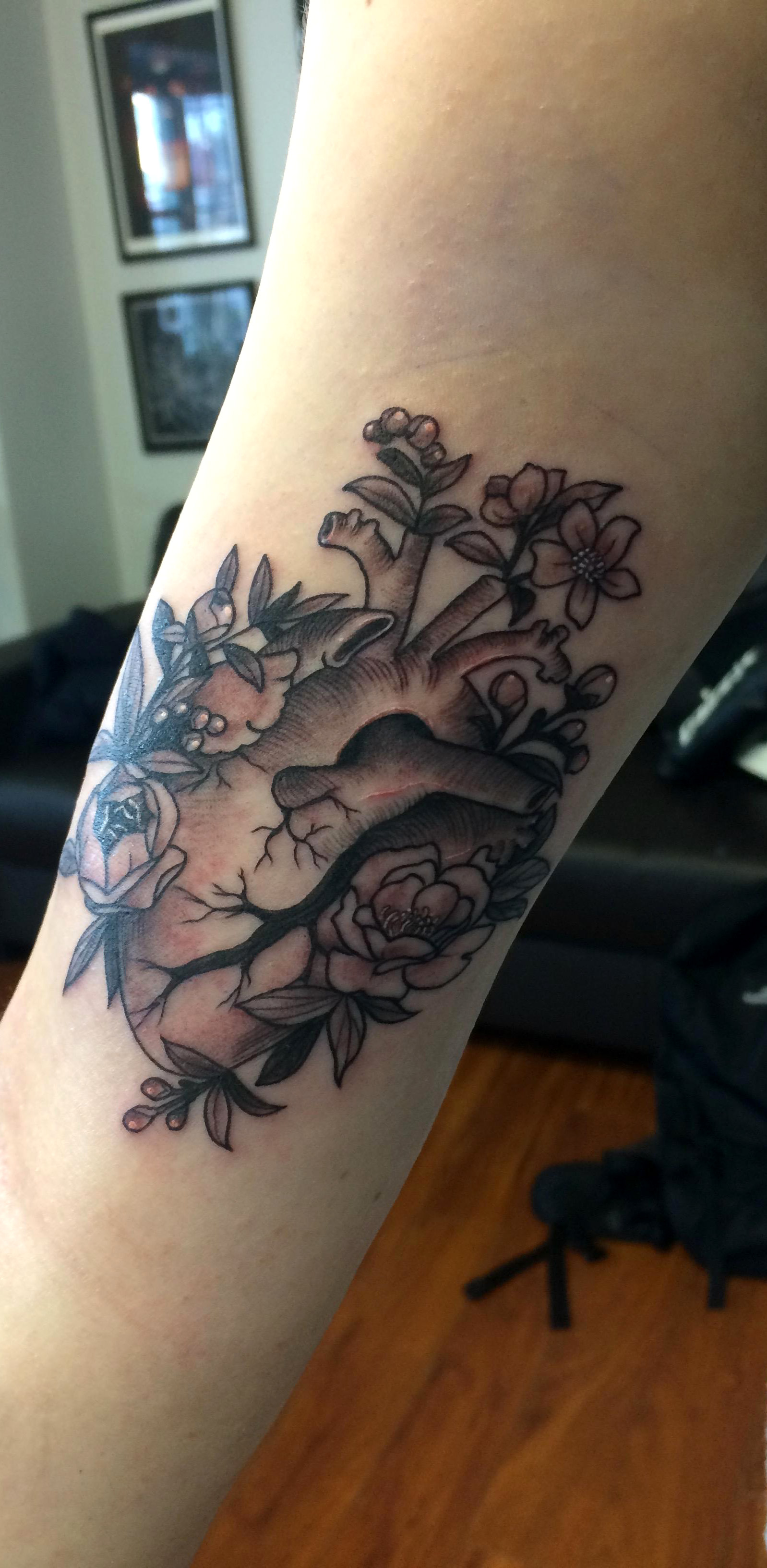 Floral heart tattoo, done by Ellie Thompson at Hibernia Tattoo in Sydney, Australia