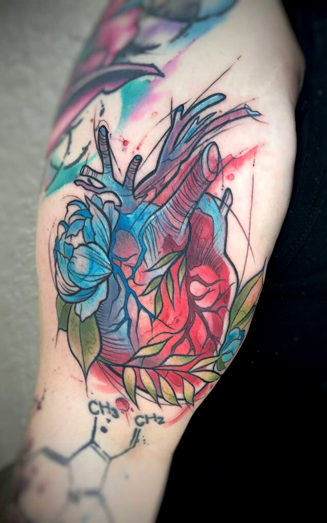 Anatomical heart tattoo by @ginafote at Ever After Tattoo in Spring Hill Florida