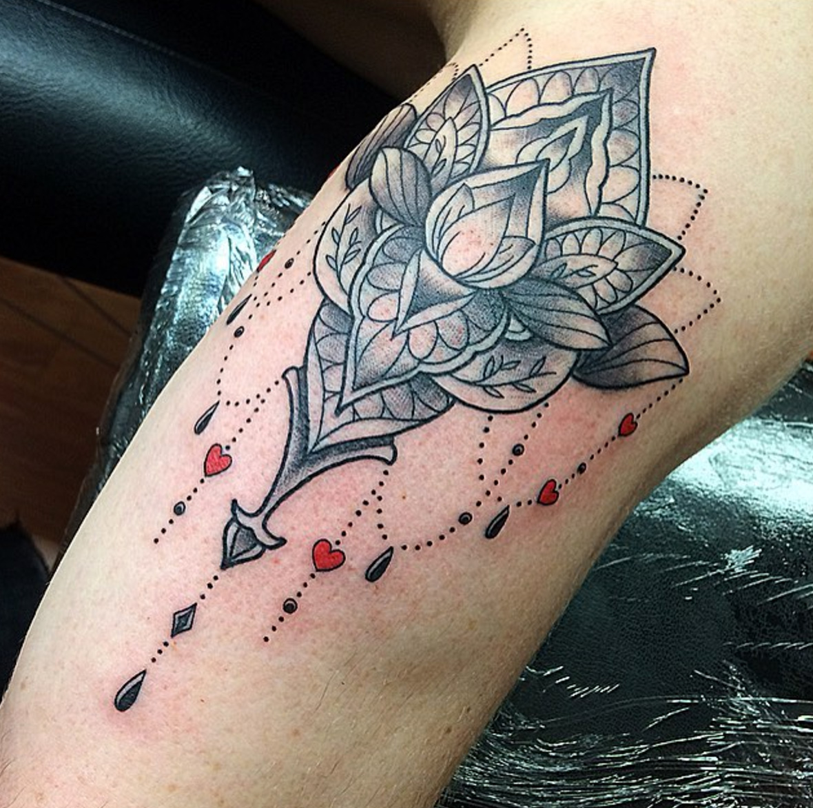 Fresh ink. Lotus with hearts tattoo. Done by Morgan Reed at Powerhouse Tattoo in Montclair, NJ