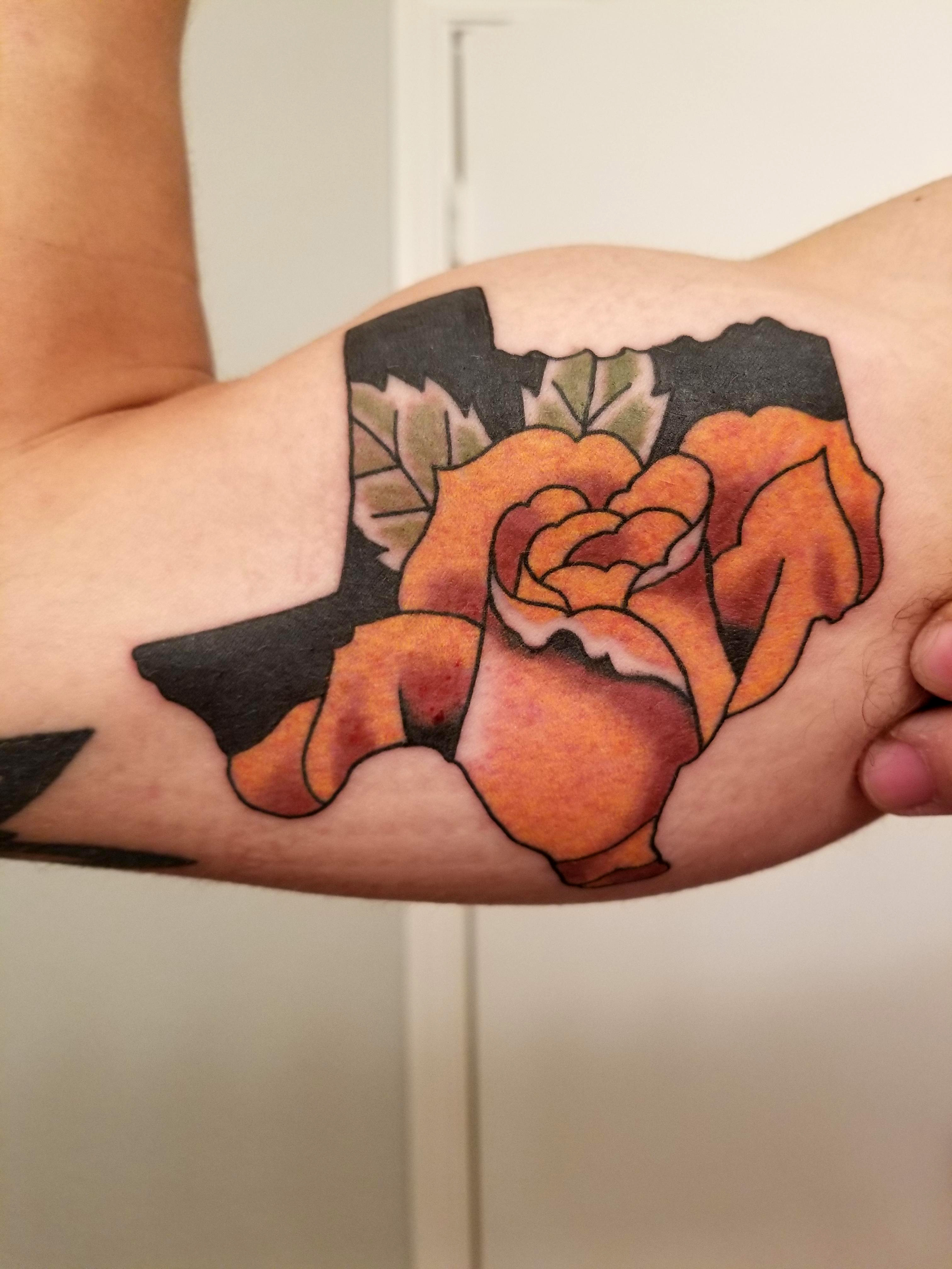 Yellow Rose of Texas by Aaron at Atomic Tattoos in Austin, TX #evamigtattoos #tattoo