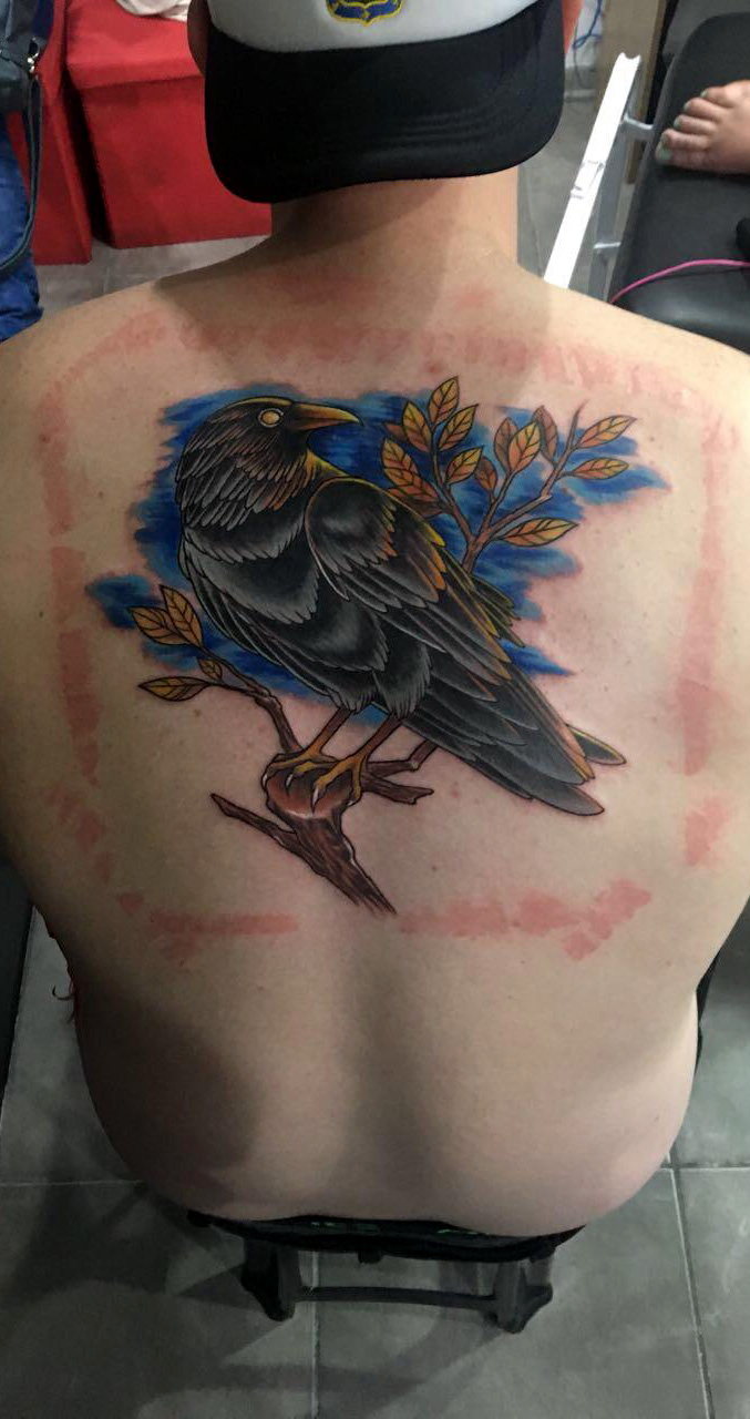 Raven tattoo by Saul Rojas at Pone Tattoo in Lima, Peru #evamigtattoos #tattoo