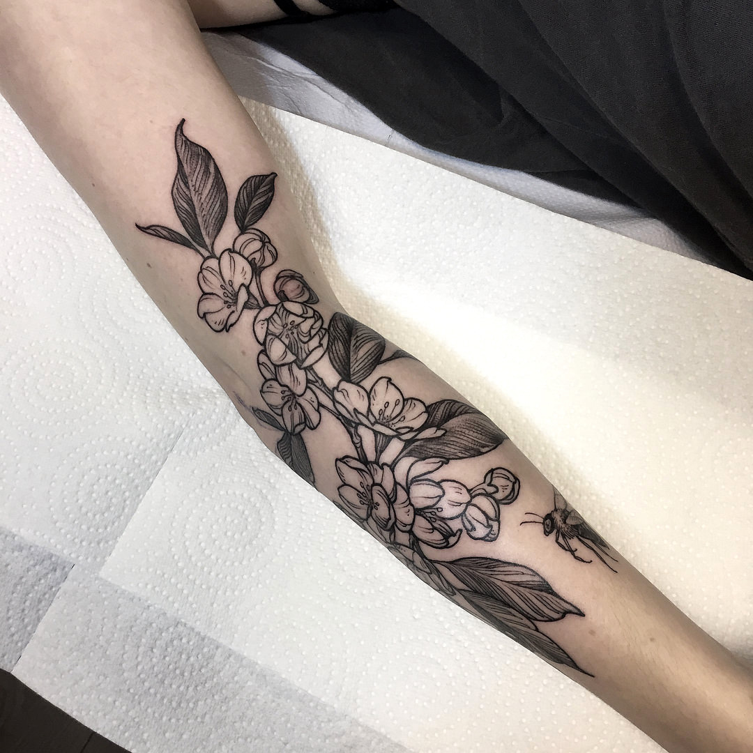 Wild cherries & bee by Shannon Elliott done at Redwood Studio in Manchester, UK