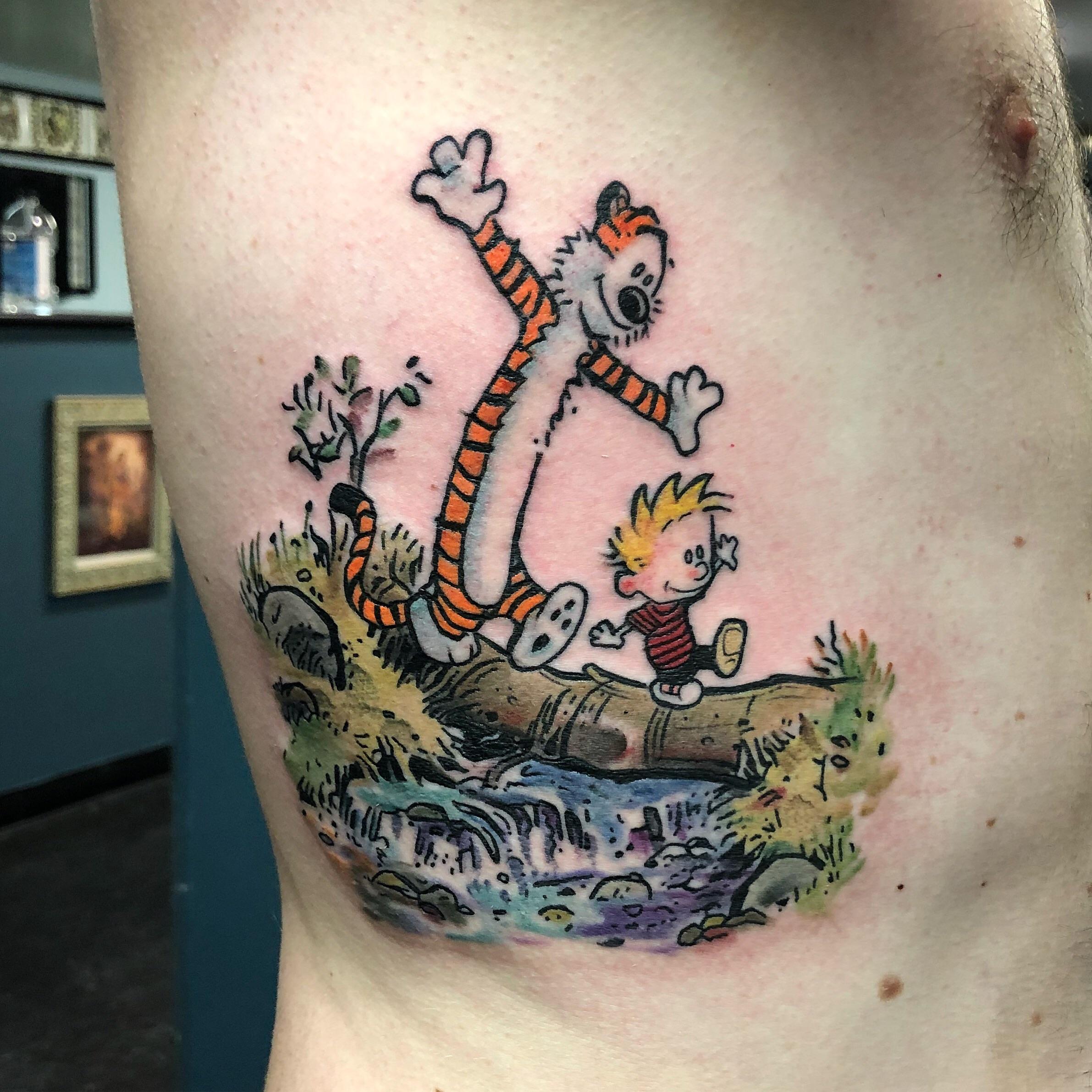 Calvin & Hobbes Tattoo Brad did at “Blu Gorilla” in Charleston S.C. #evamigtattoos #tattoo