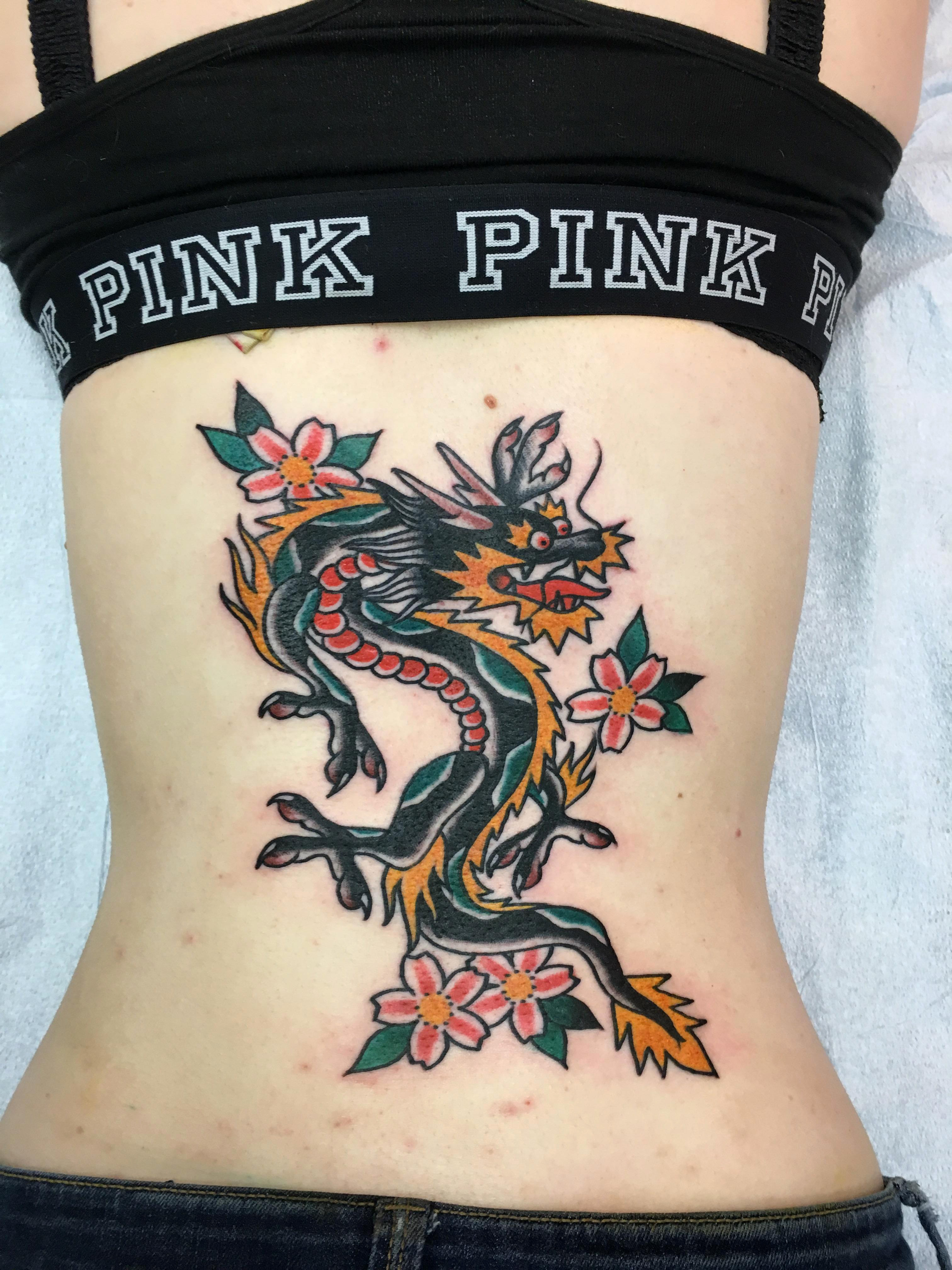 American Traditional Dragon Done by Brandon Ing at TCB Tattoo Parlour in Toronto, Canada