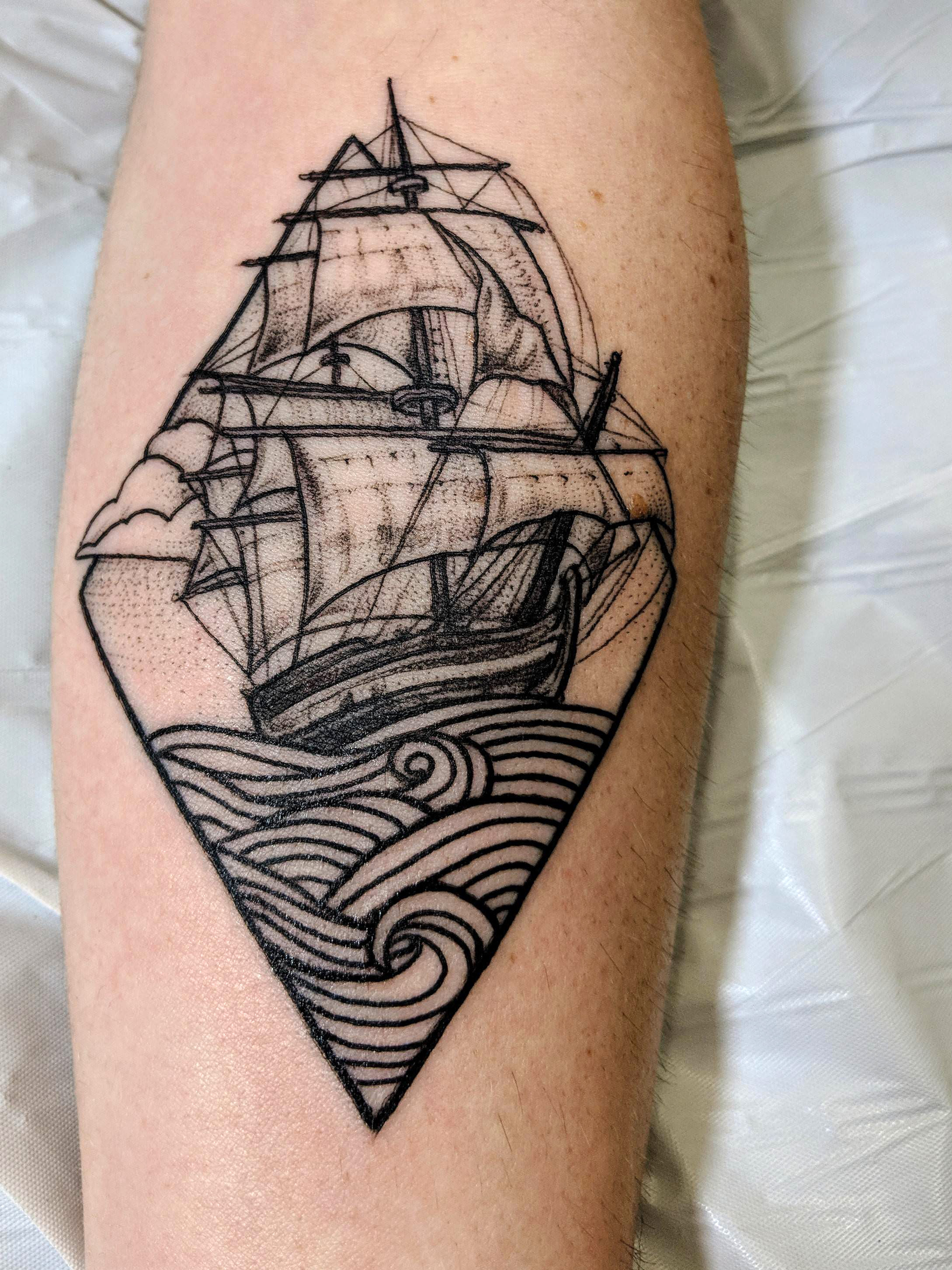Brigantine, done today by Jeremy Golden at Eye of Jade in Chico, CA #evamigtattoos #tattoo