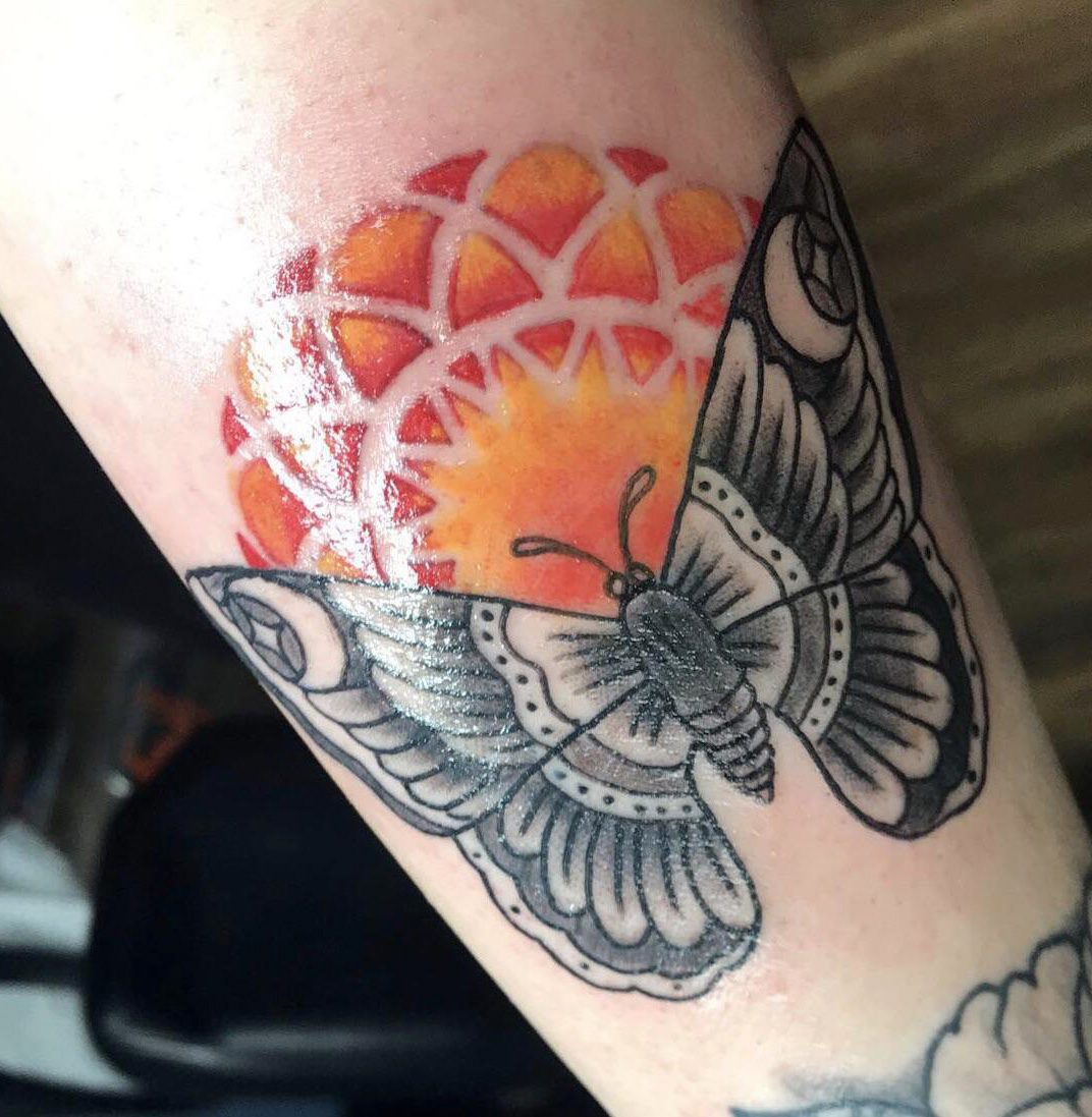 Moth tattoo on my forearm by Dom at the Inkwell in Ramsey, Minnesota #evamigtattoos #tattoo