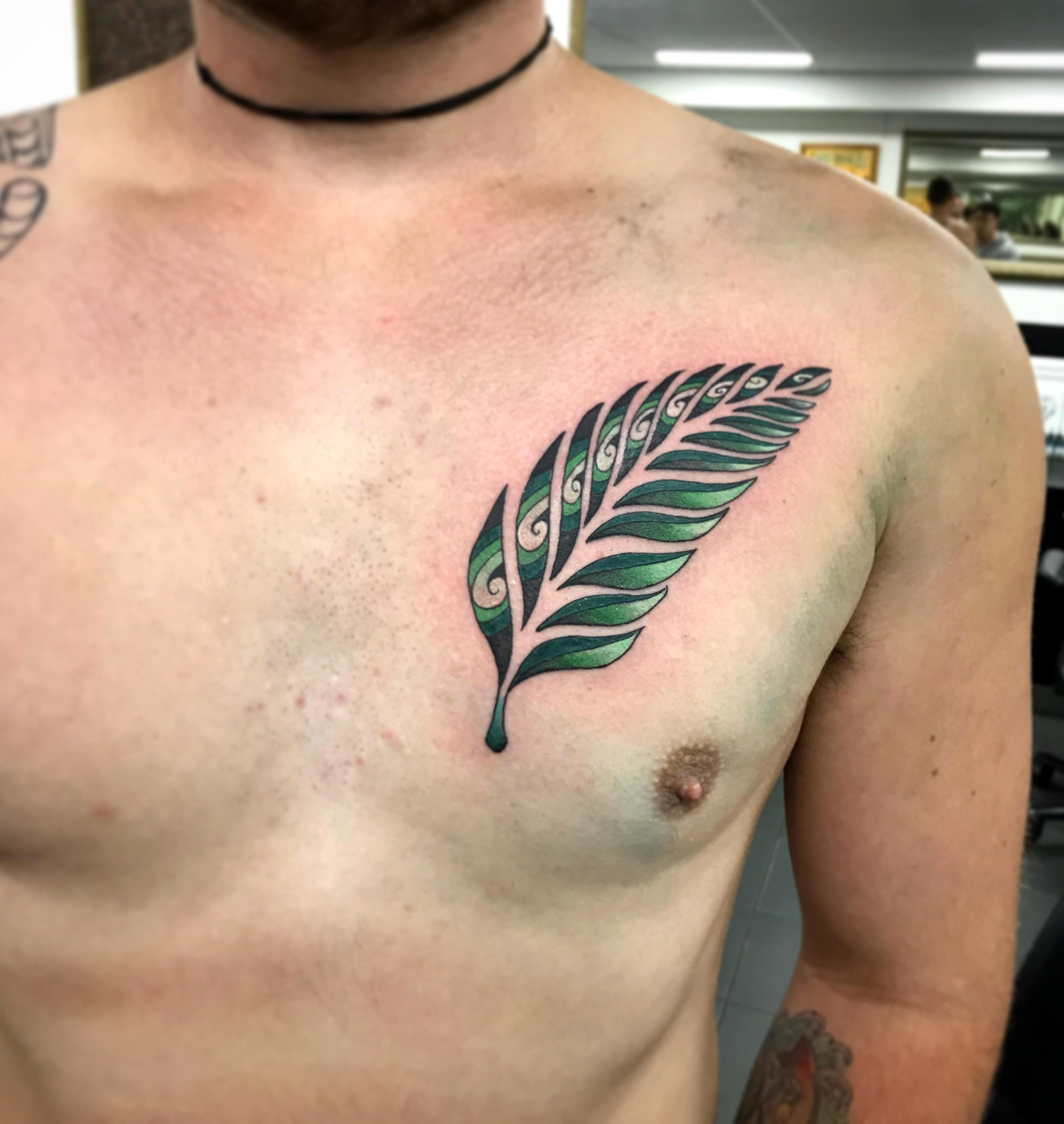 Green silver fern done by Bucky, studio Victims of Ink , port Melbourne #evamigtattoos #tattoo