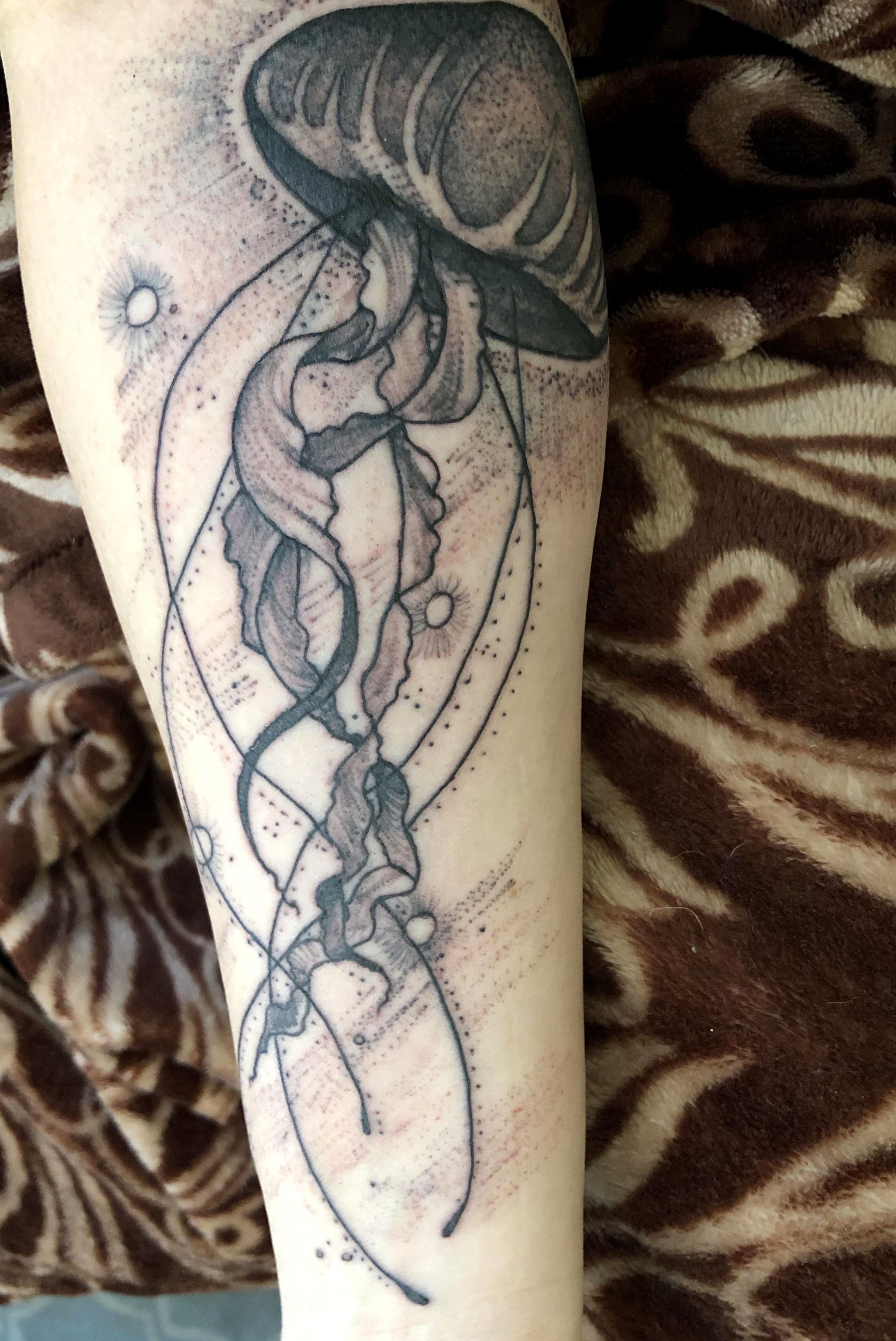 Jellyfish done yesterday by Kayla at Minneapolis Tattoo Shop. Mpls, Minnesota #evamigtattoos #tattoo