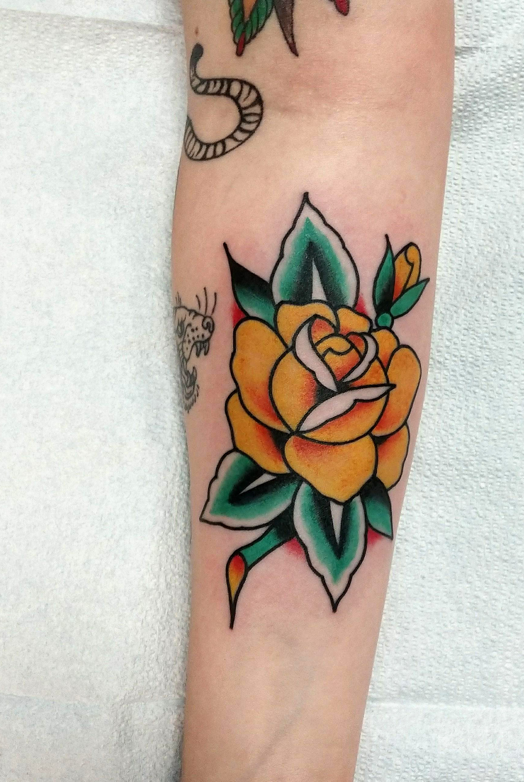 traditional flower by Jesse Owen at Taunton Tattoo Company in Oshawa, ON #evamigtattoos #tattoo