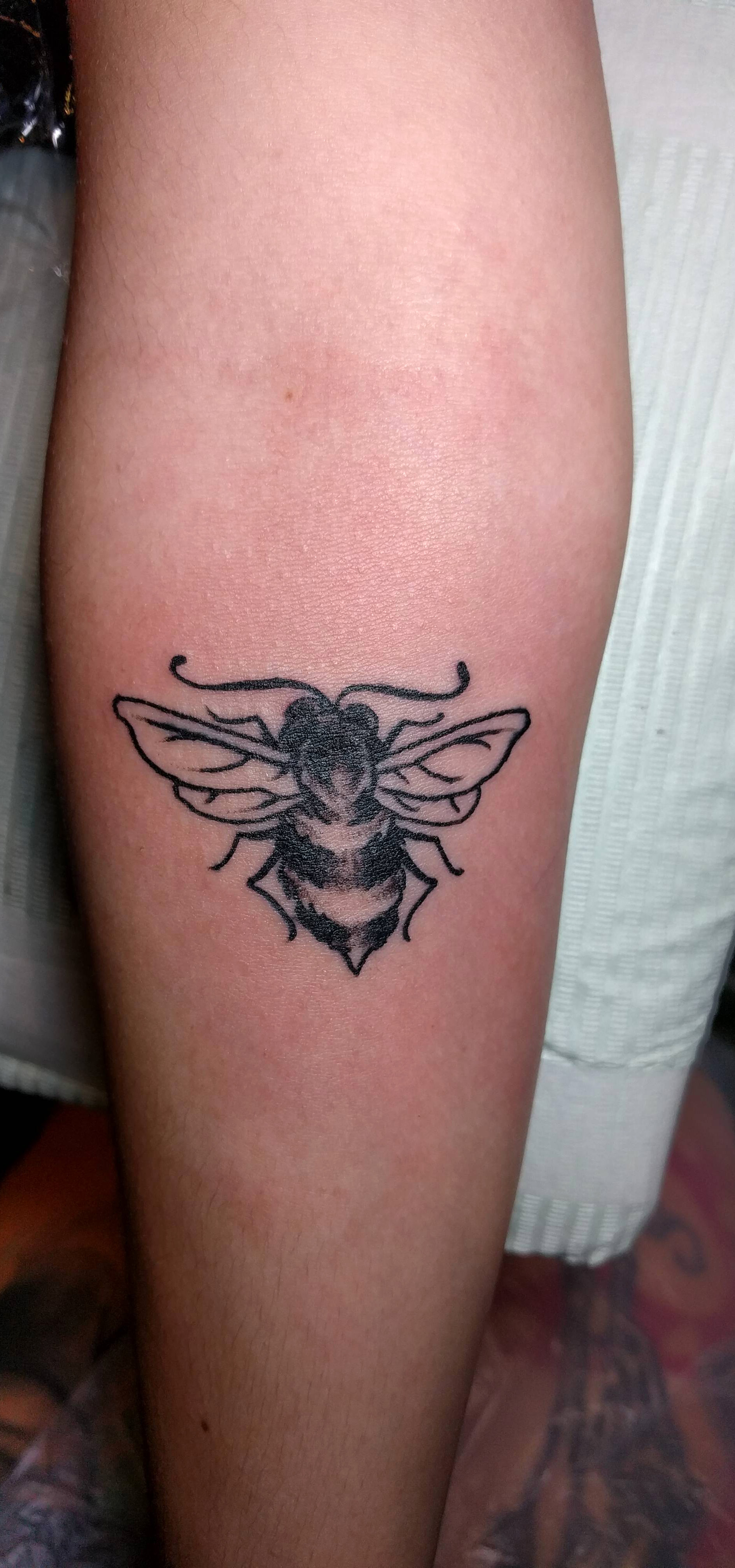 Bee tattoo done by Celeste Nist from Bee Tattoos at the WV Tattoo Expo