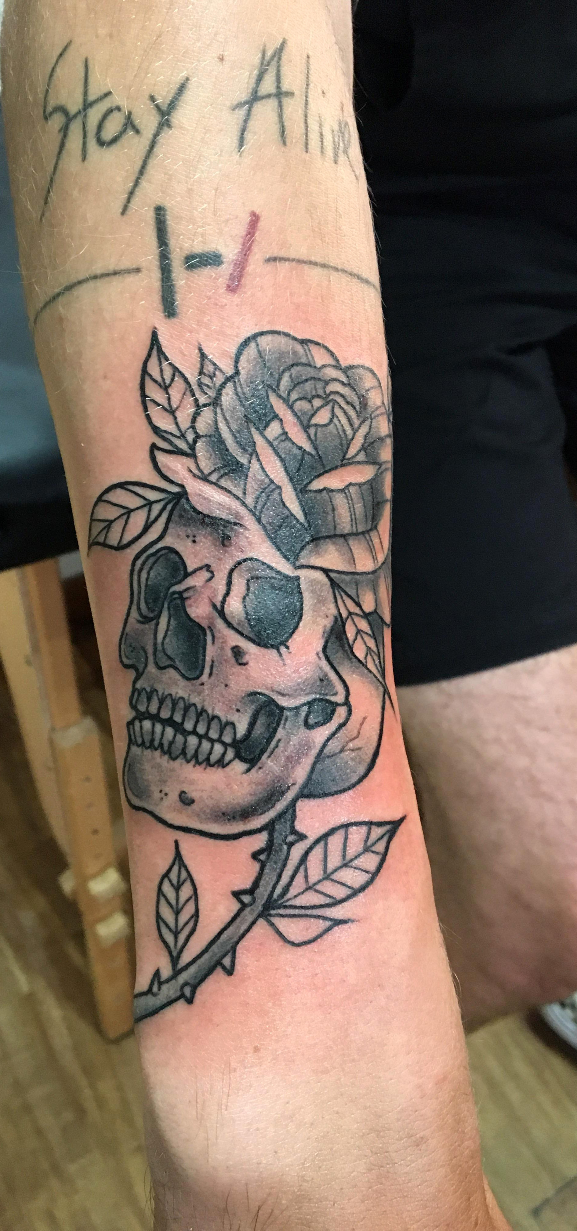 Skull tattoo by Crystal Murrin at Malloy Creations in Keene, NH