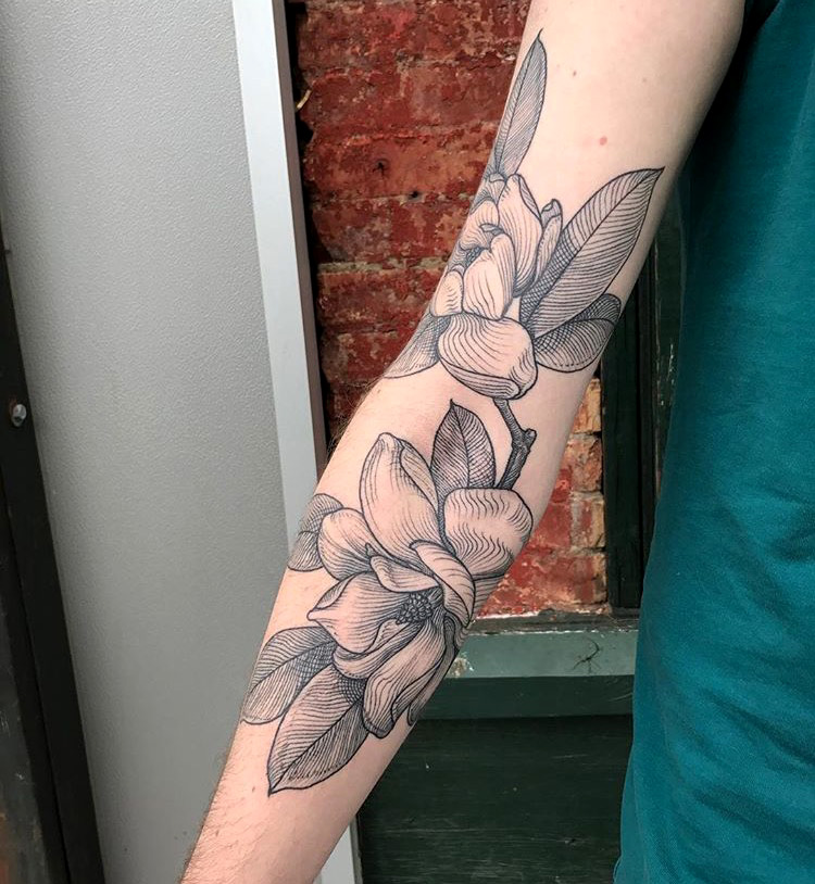 Magnolias by Rachel Hauer, East River Tattoo, Brooklyn, NY
