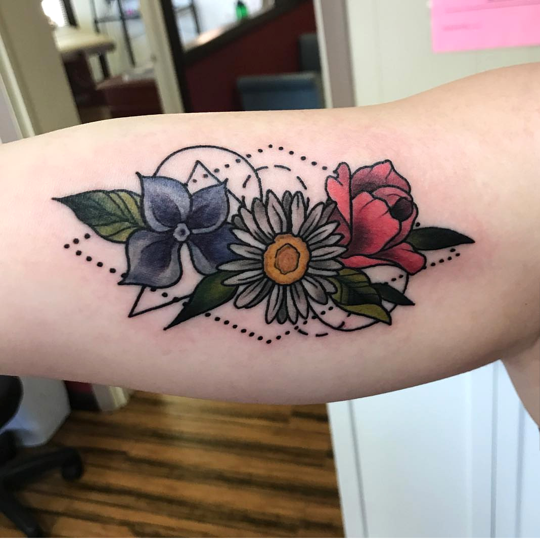 Flowers tattoo Done by Hailey at Skinny Buddah in Green Bay