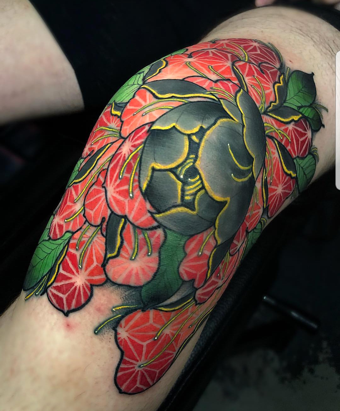 Peony on knee by Jay Joree @ Third Eye Gallery in Dallas, TX #evamigtattoos #tattoo