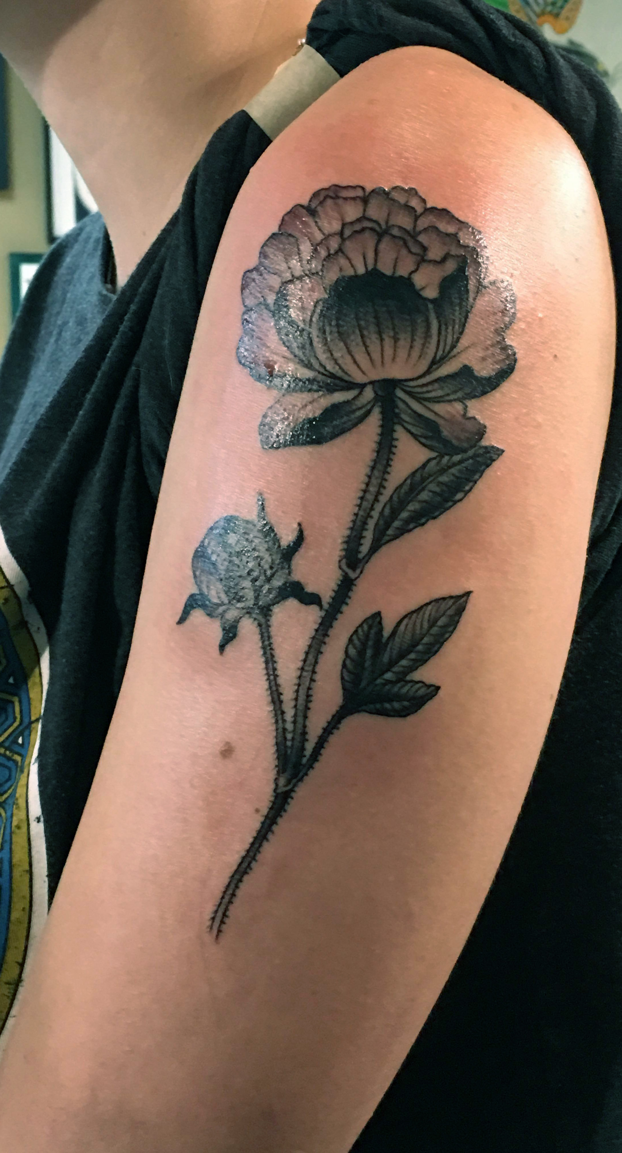 Peony. Done by Sky James at Think Tank in Denver #evamigtattoos #tattoo