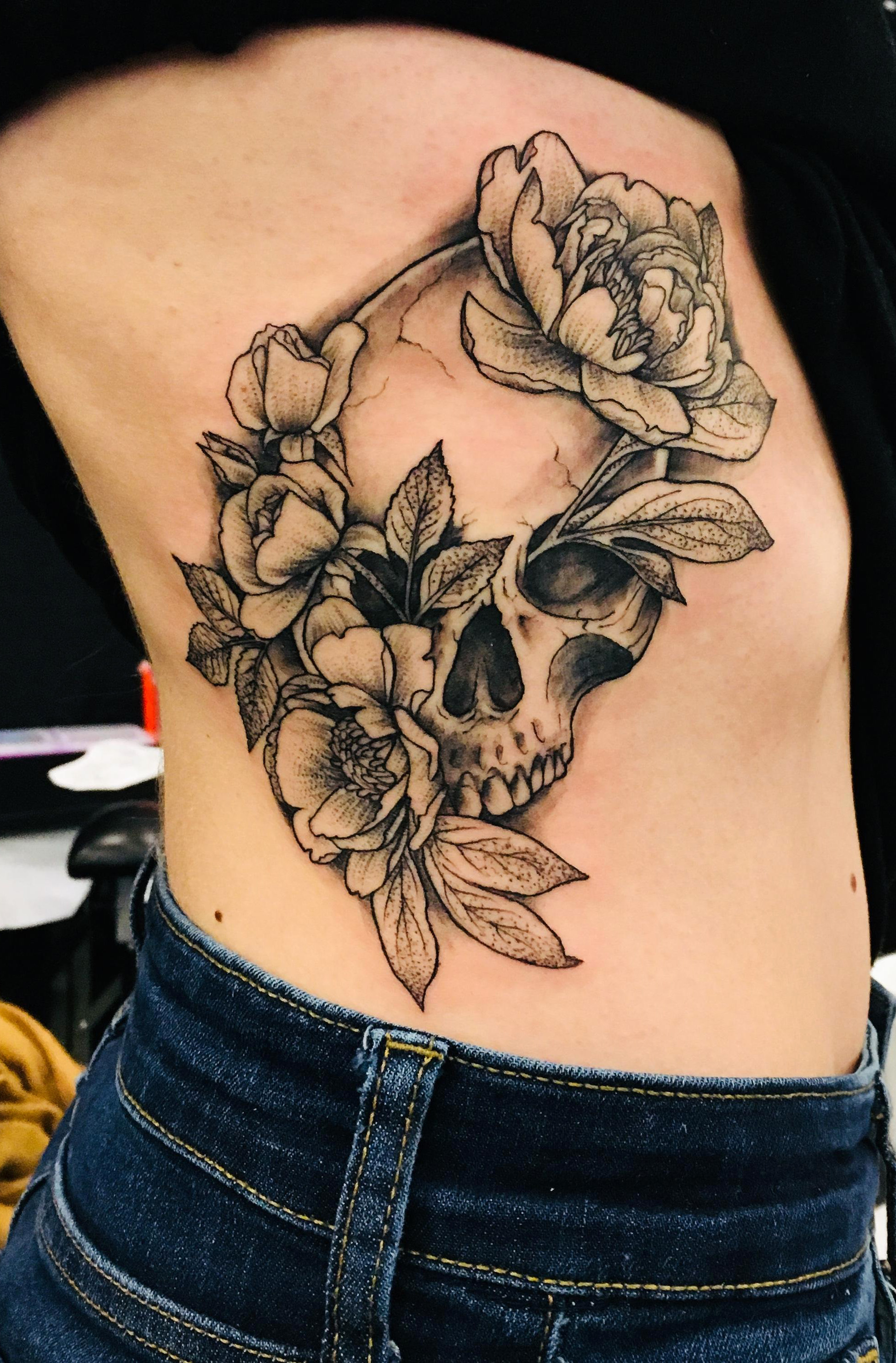 Botanical Skull tattoo done by Bridget Punsalang of Needlewurks, Saratoga Springs, NY #evamigtattoos