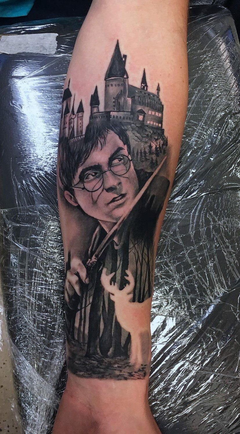 Harry Potter done by Kris CK at badcat tattoo studio in Rapid City, SD #evamigtattoos #tattoo