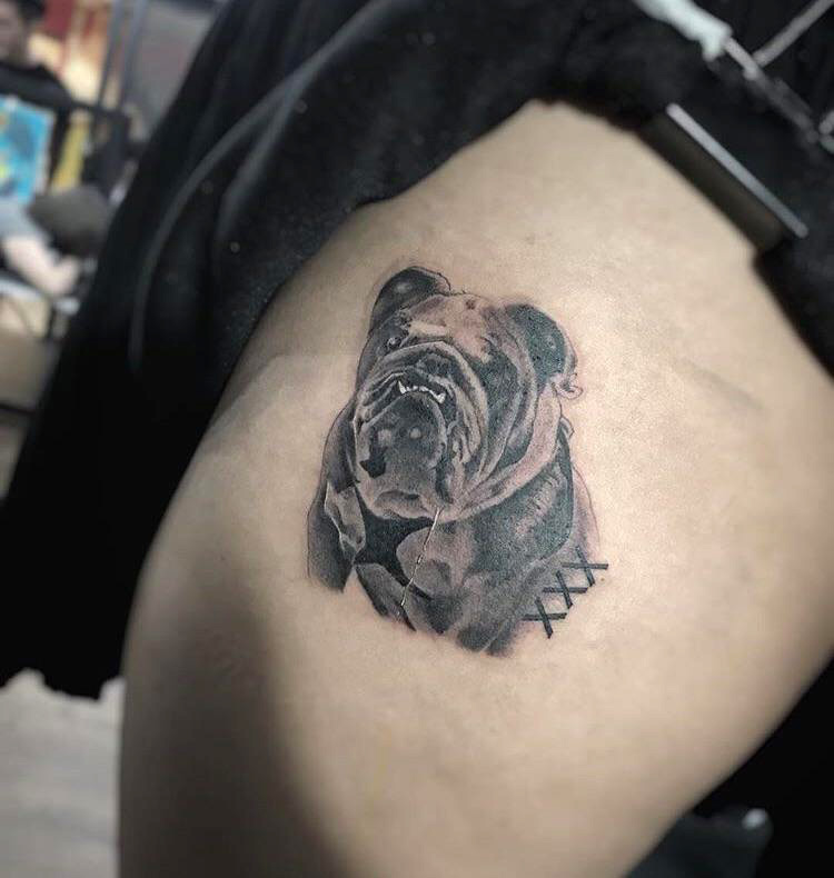 Bulldog tattoo, Chriss, Ironbunny Tattoos, Malaysia #evamigtattoos #tattoo