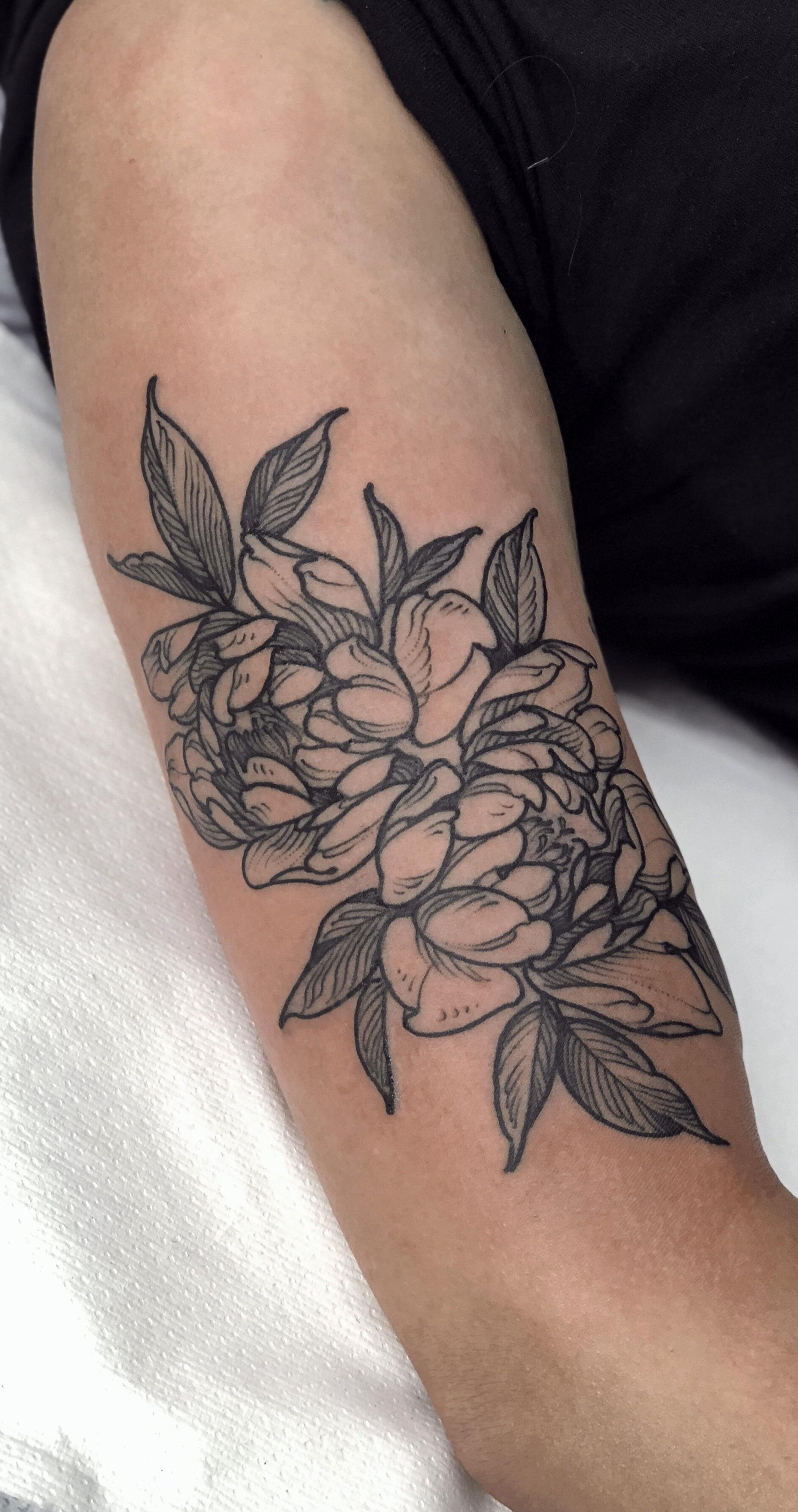 Peonies by Shannon Elliot for her flash day at Rose Gold’s Tattoo in San Francisco #evamigtattoos