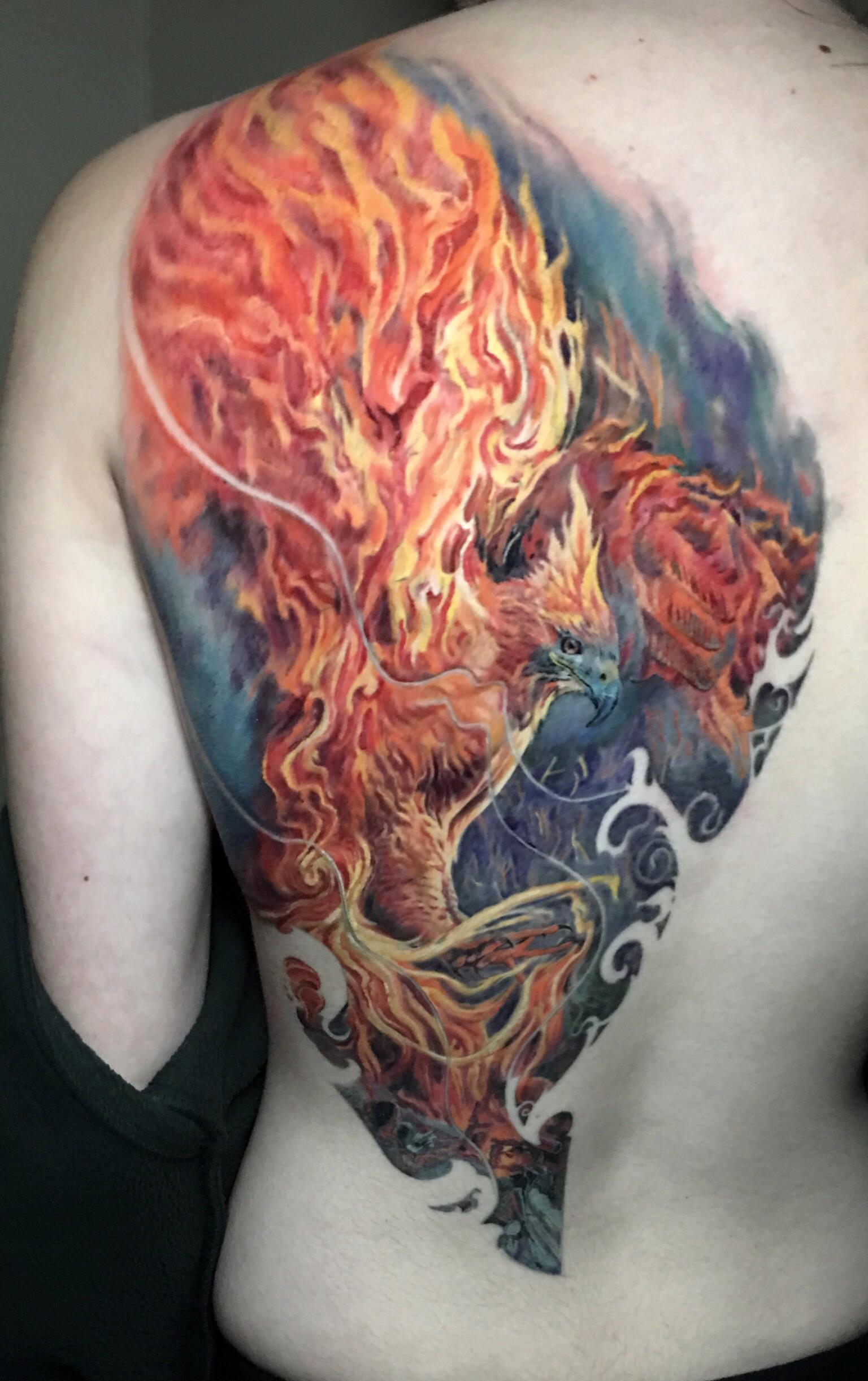 Phoenix by Mark Womack at Dark Age Tattoo in Denton #evamigtattoos #tattoo