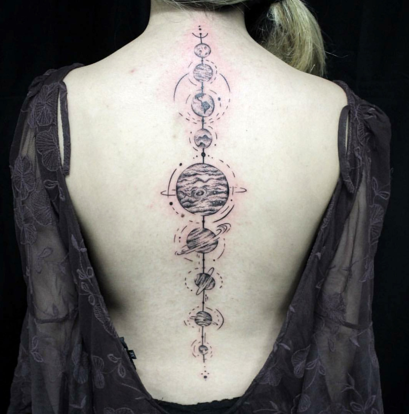 Solar System tattoo done by Mary Le at Illusions Cal Tattoo, San Jose, CA #evamigtattoos #tattoo