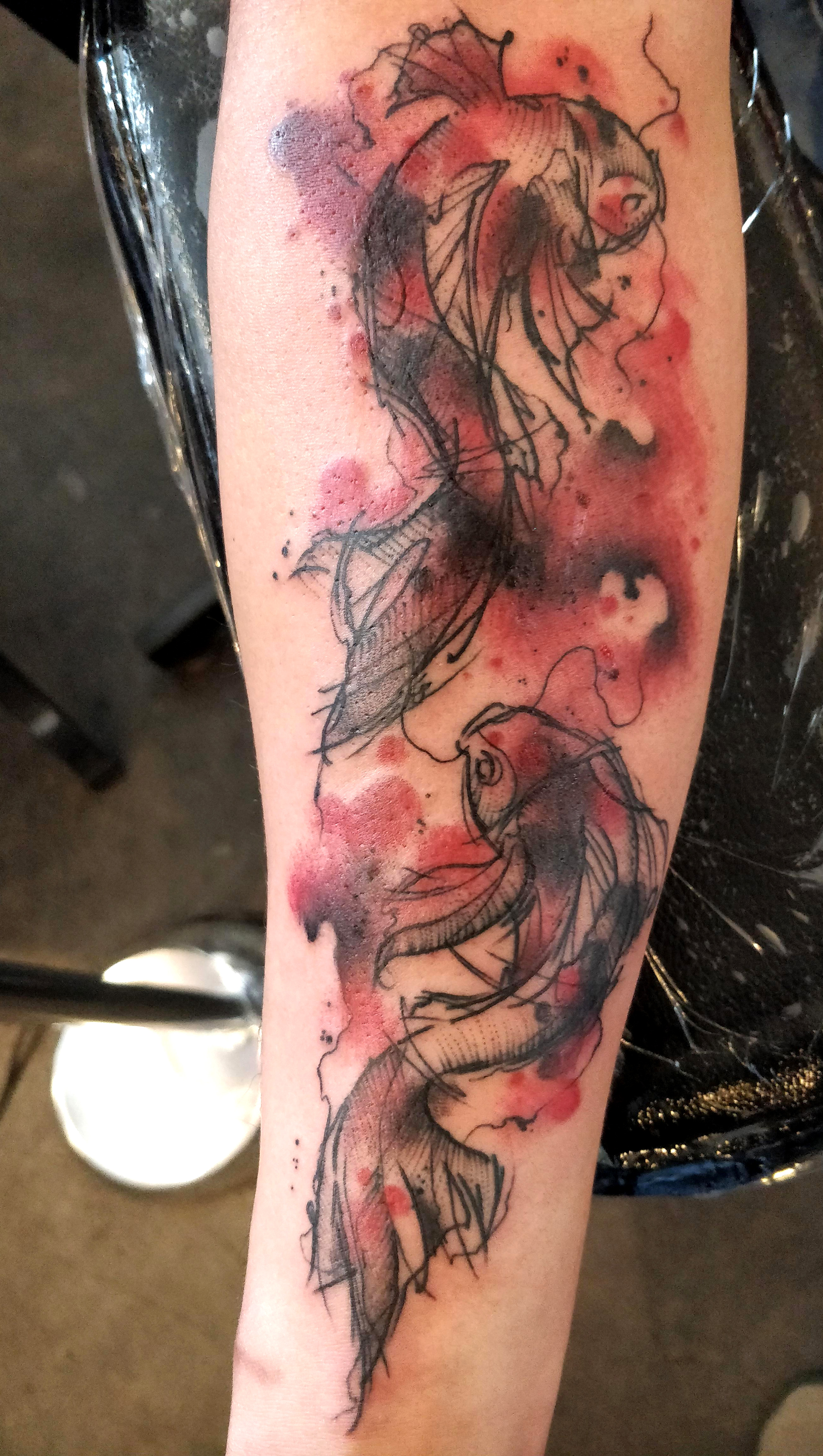 Watercolour Koi Fish by Zachary Bailey, New Rose Tattoo, Portland, OR #evamigtattoos #tattoo