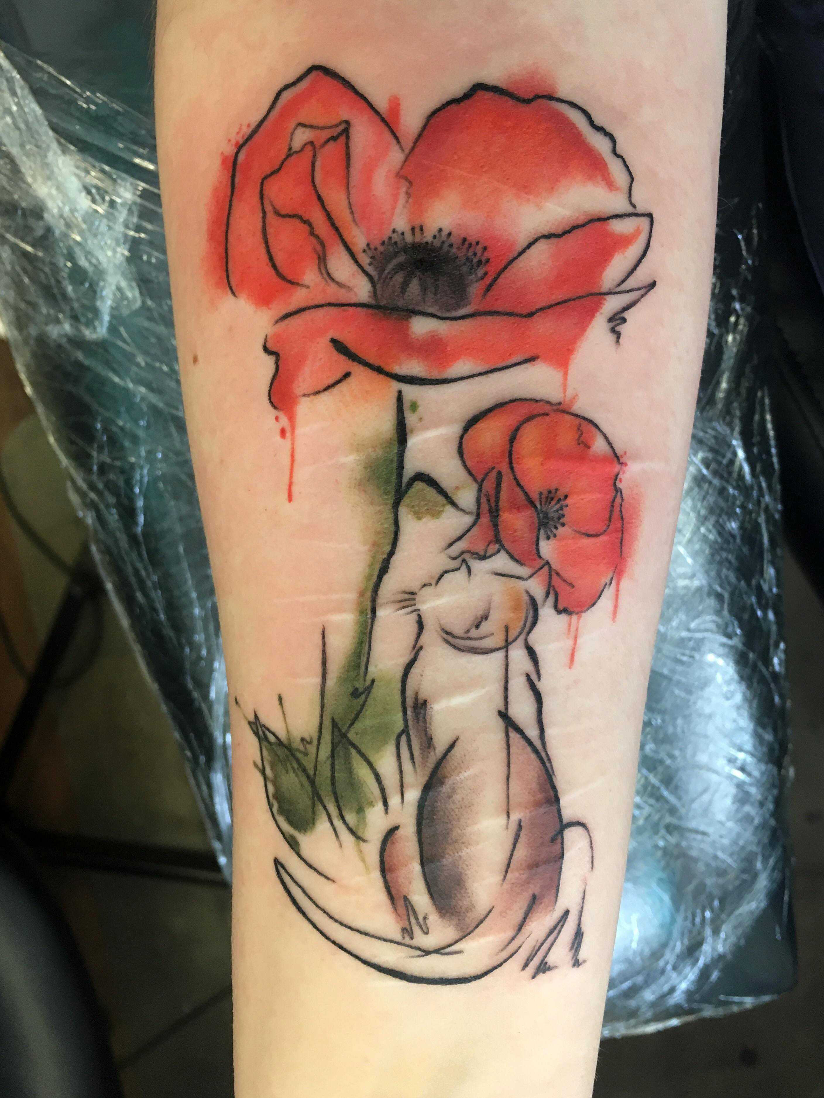 Watercolour tattoo done by Jess Owens at Halifax Collective studio, Halifax, UK #evamigtattoos