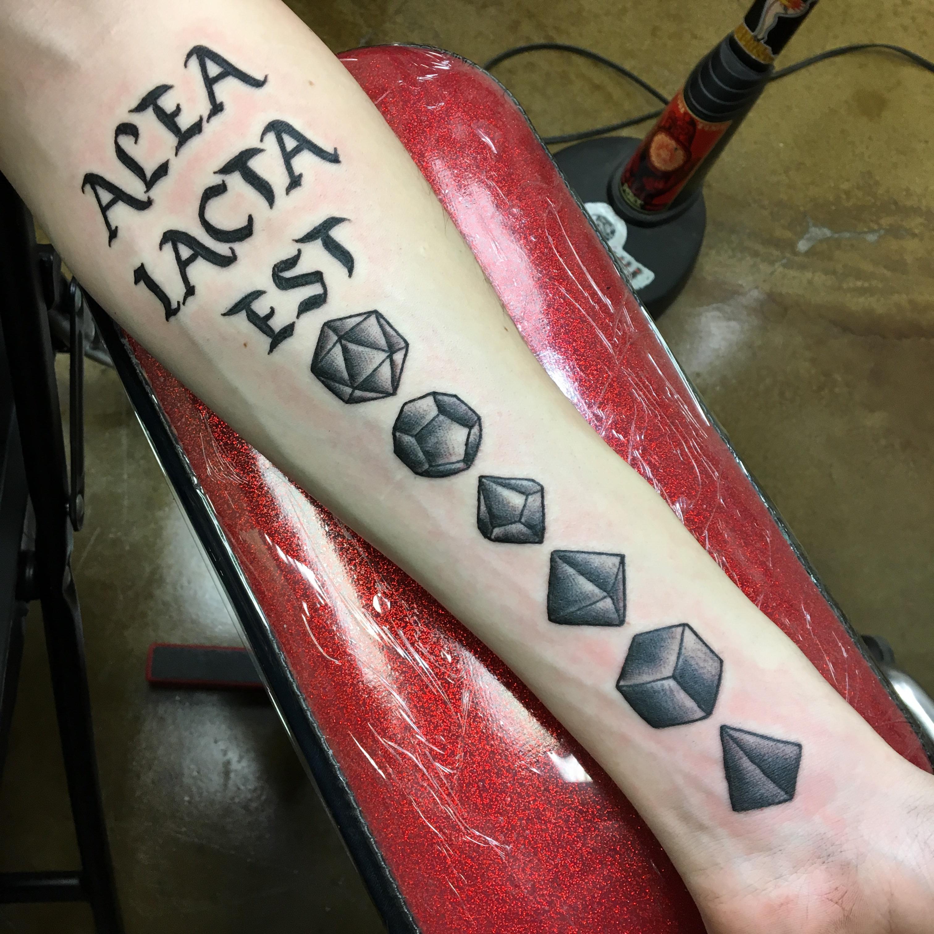 Alea Iacta Est Done by Brandon at Ocean Mystique’s Ink Gallery, Norfolk, VA #evamigtattoos #tattoo