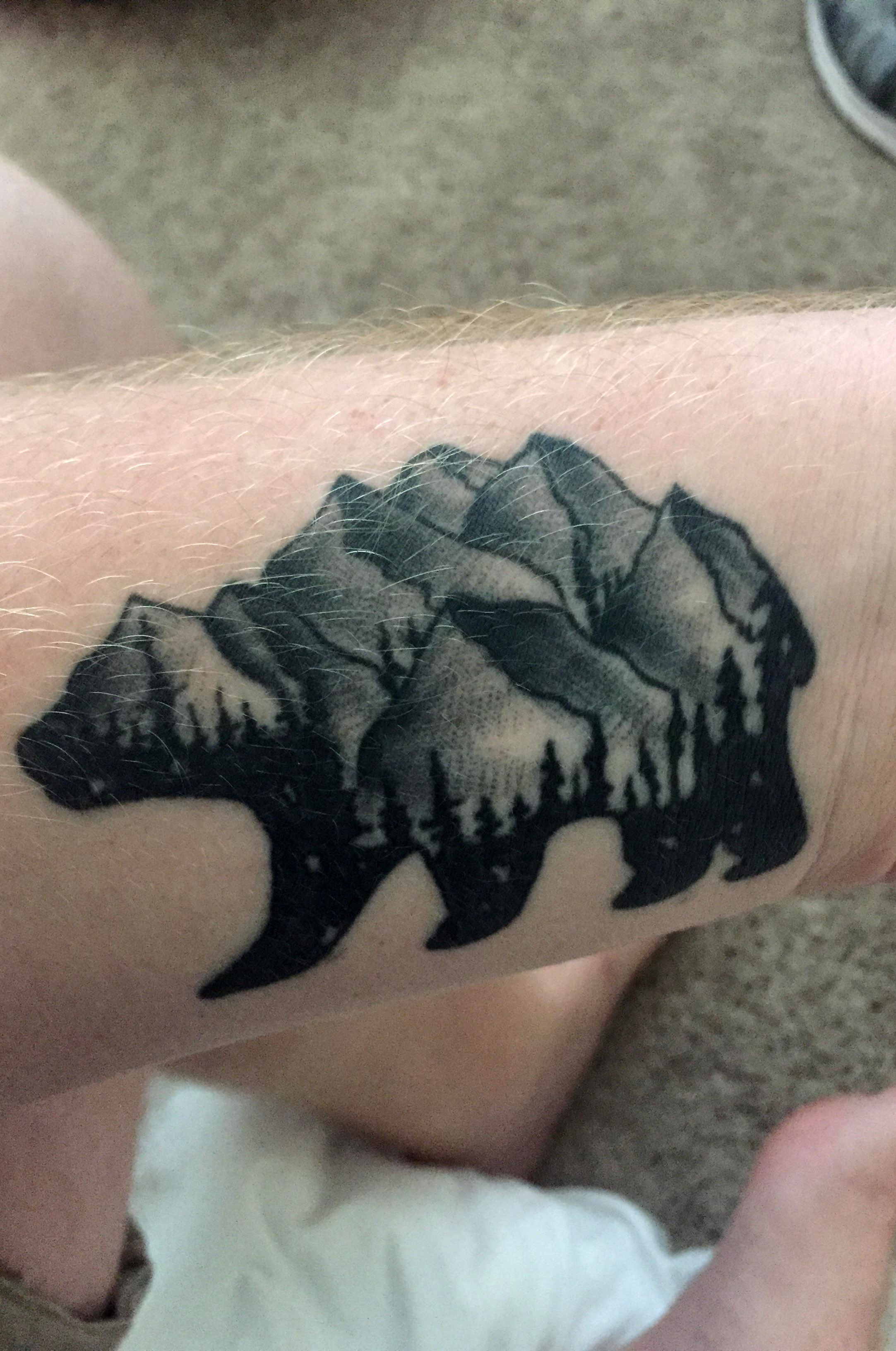 Landscape Bear done by Jay Green at Zen Tattoo Adairsville, GA