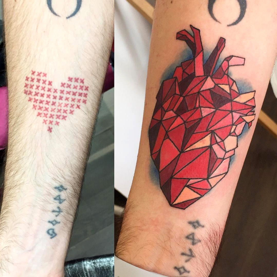 Geometric Heart tattoo by Angel at Ravenskin, Cowes