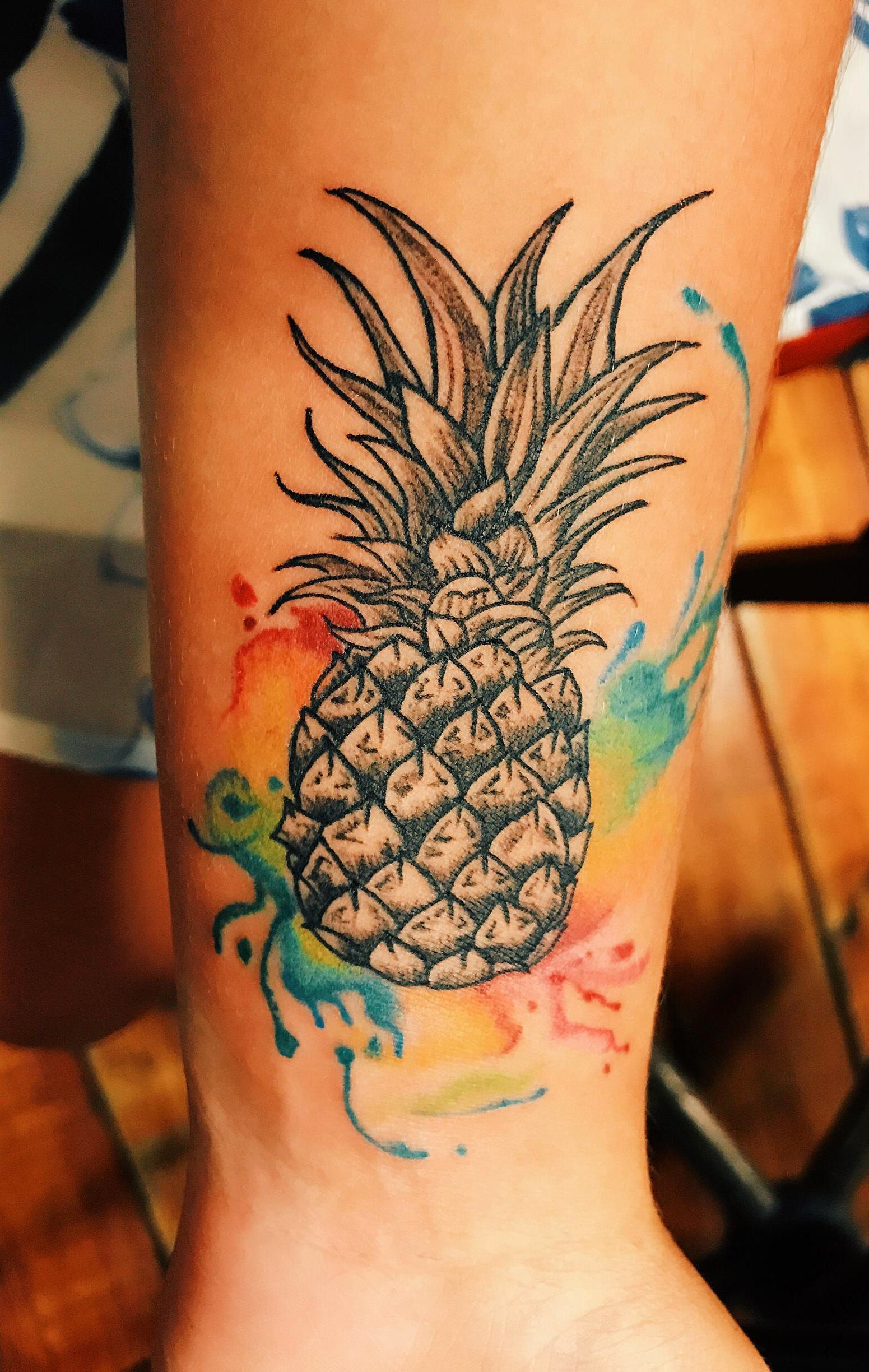 Pineapple tattoo done by William Vera Cancio, Playa Del Carmen, Mexico
