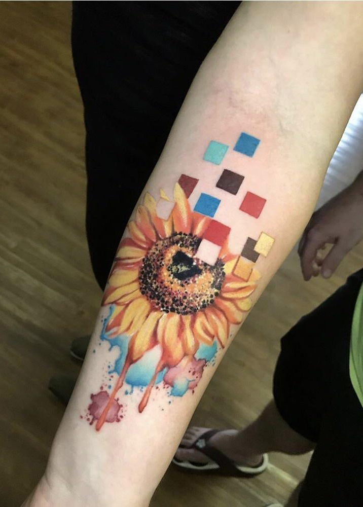 Sunflower tattoo by Jason Calvin at Novellus Studio in College Station, TX