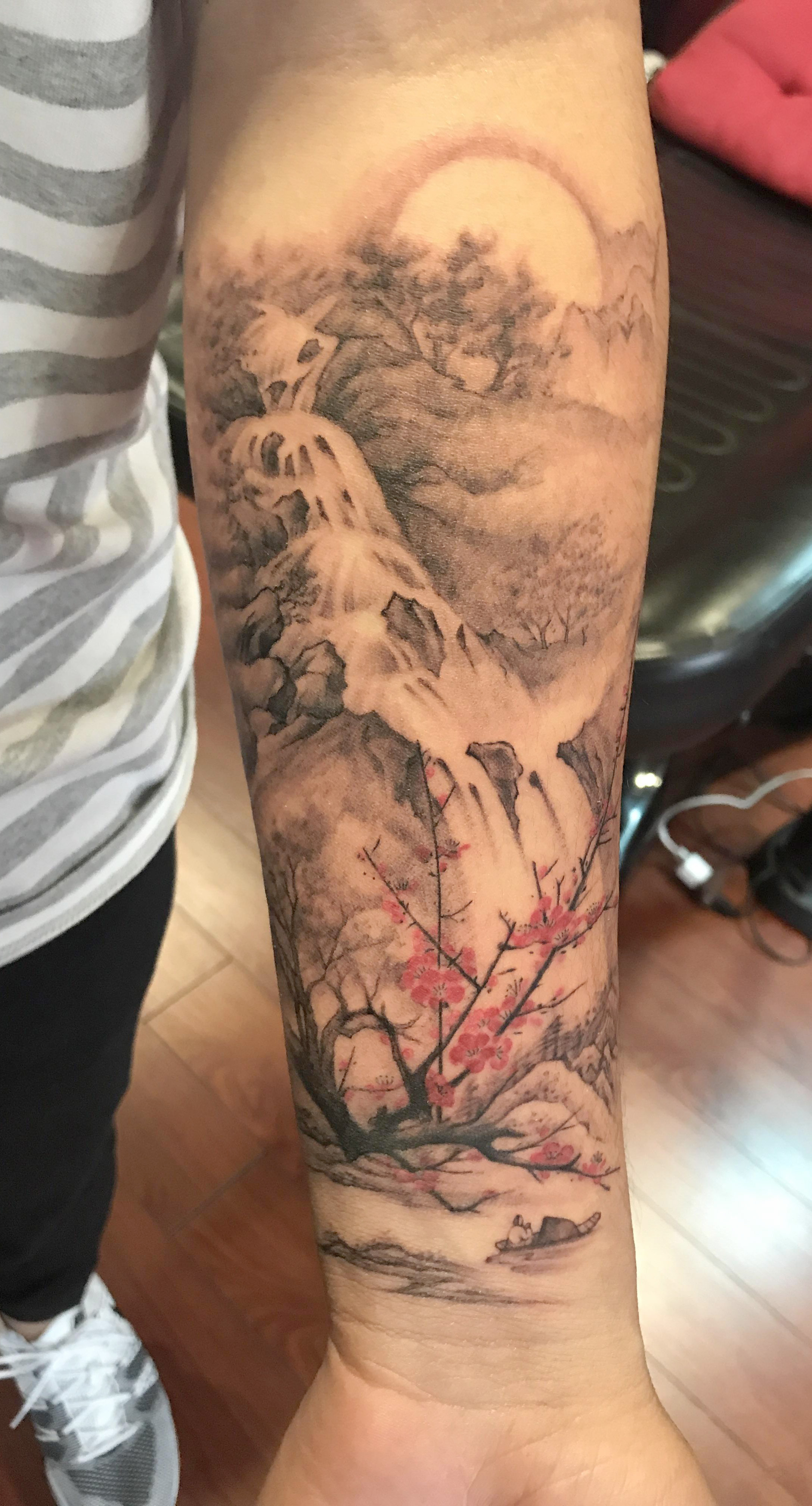 Landscape Tattoo by Gloria Zhang from Hailin Tattoo in West Hollywood