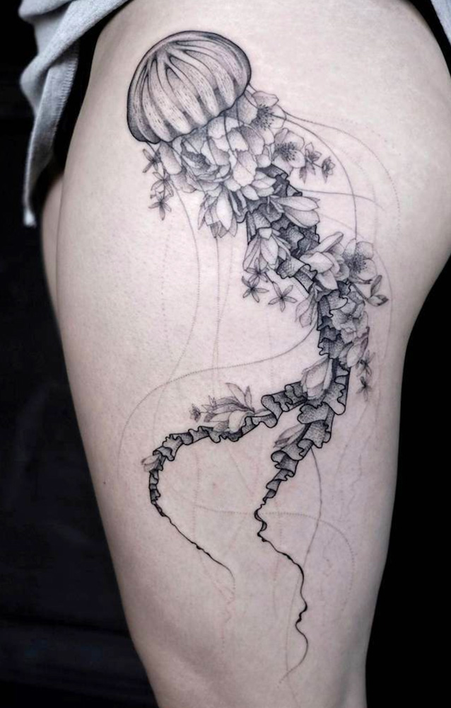 floral jellyfish by Norako at Gristle Tattoo in Brooklyn