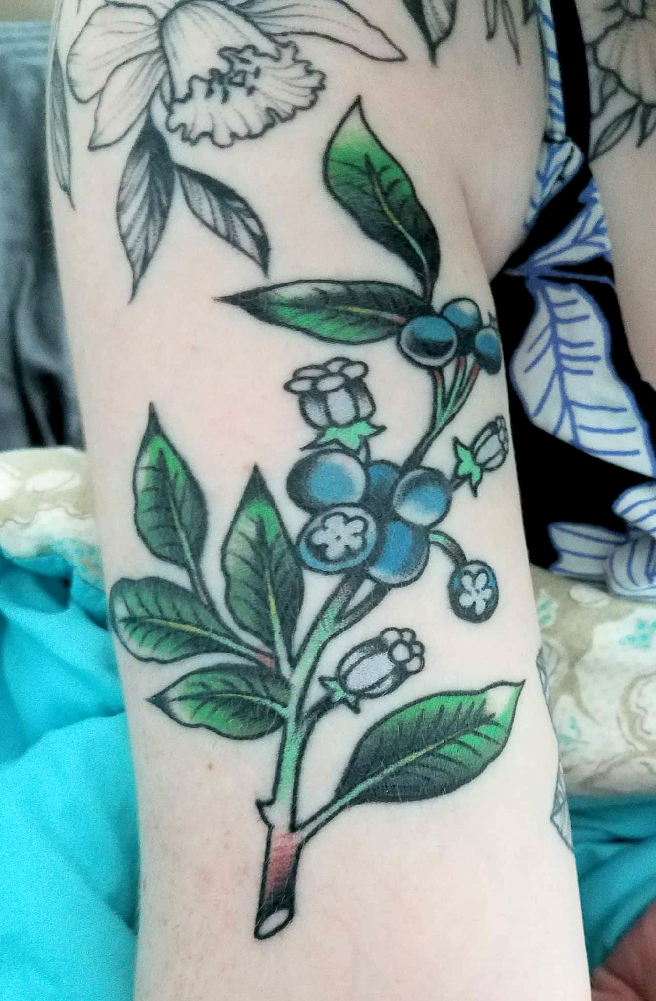 Blueberry tat done at the Milwaukee Villain Arts Convention by Andrew Mongenas of Brown Brothers Tat
