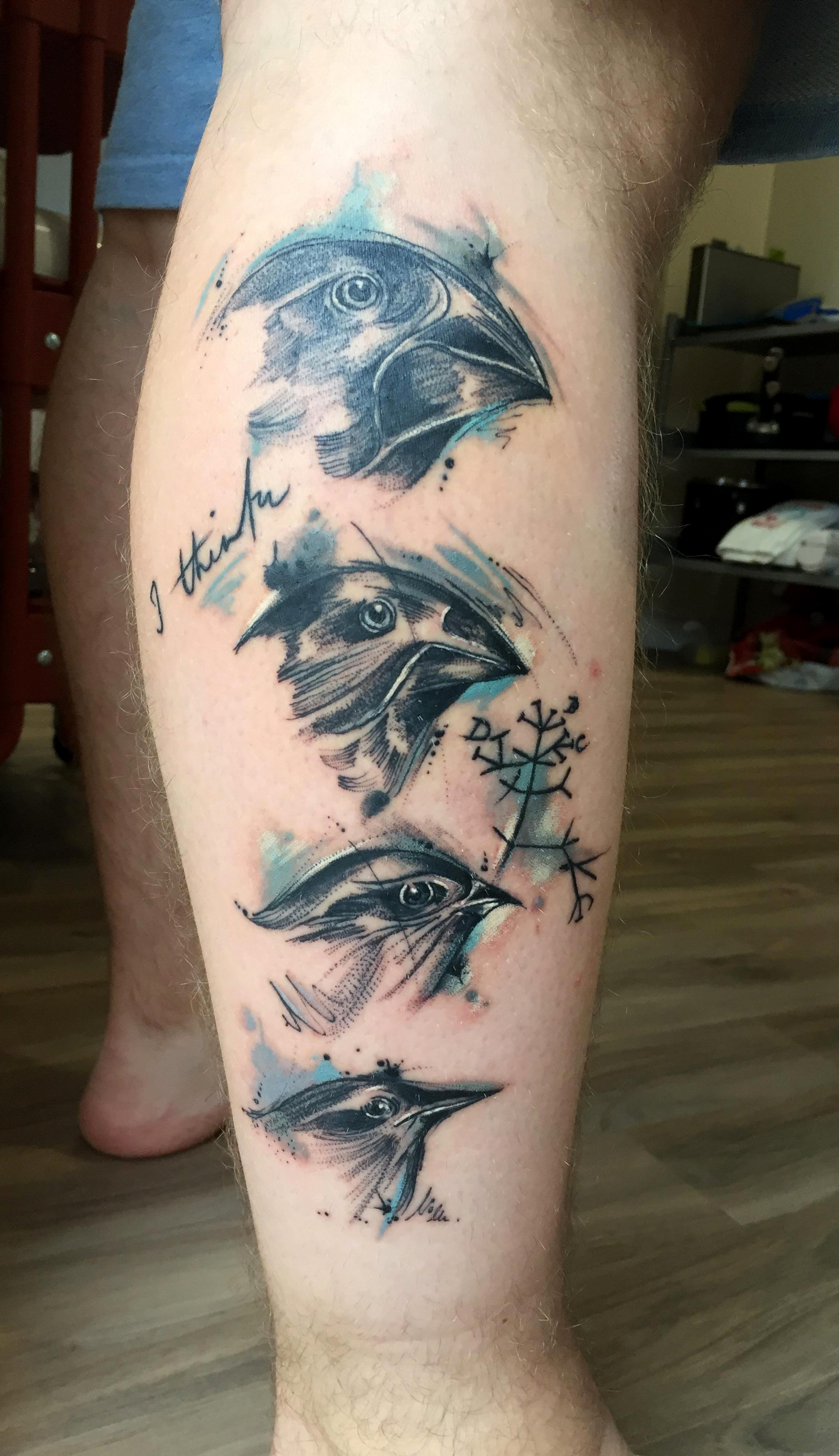 Darwin’s finches tattoo by Lady Chappelle @ Steele and ink, Birmingham, UK