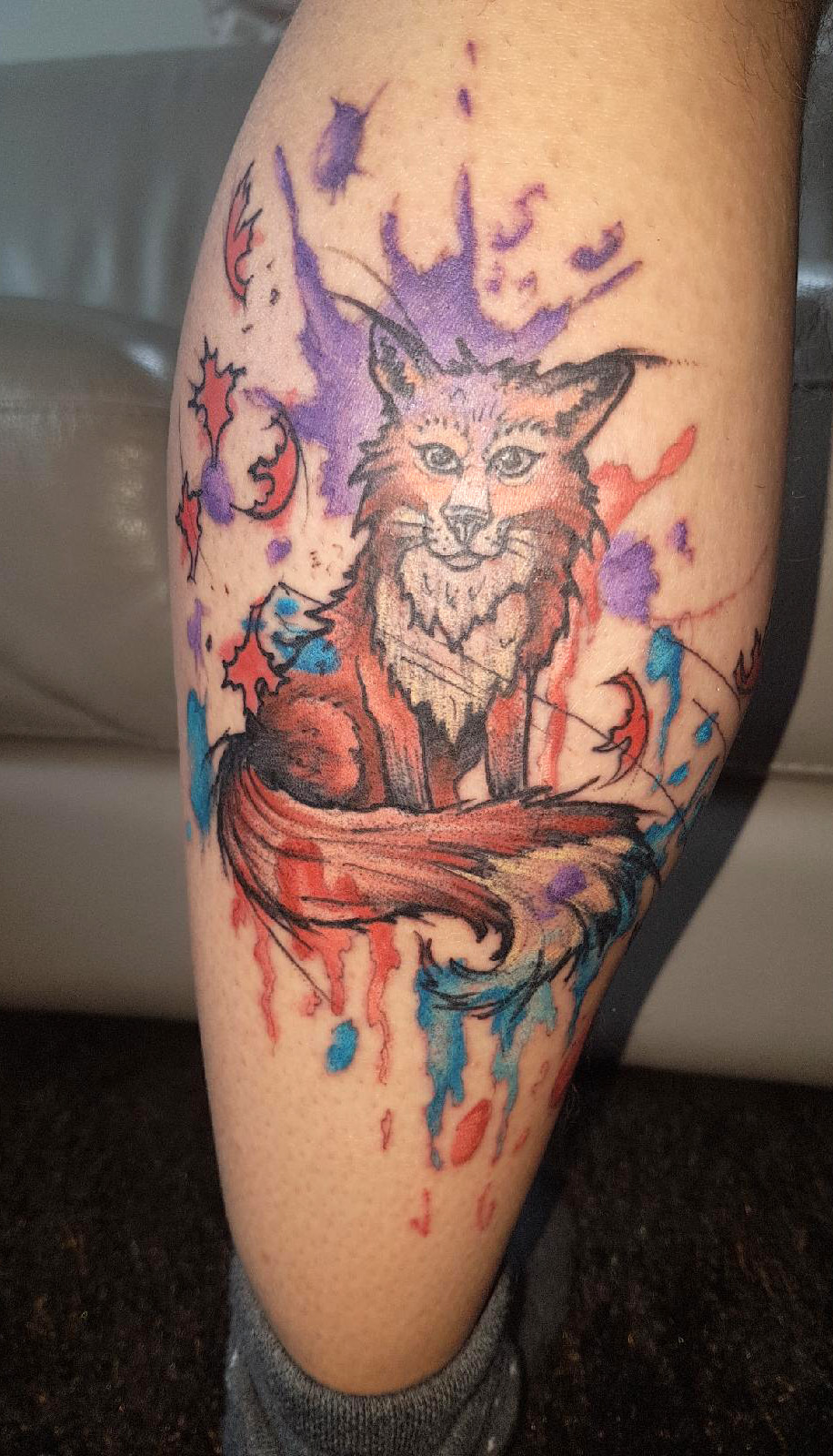 Fox tattoo. By Vince at Narrow Waters, Kelowna, B.C.