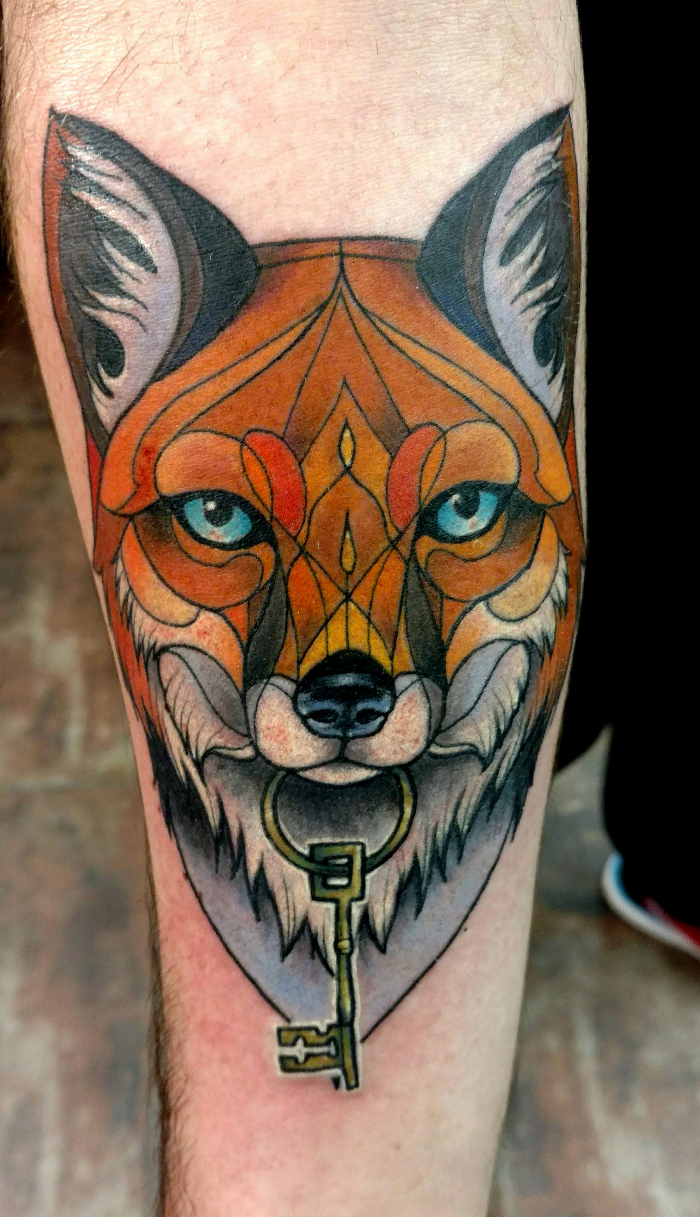 Fox and Key tattoo from Alex Gregory at Evolution Tattoo in Bloomington, MN