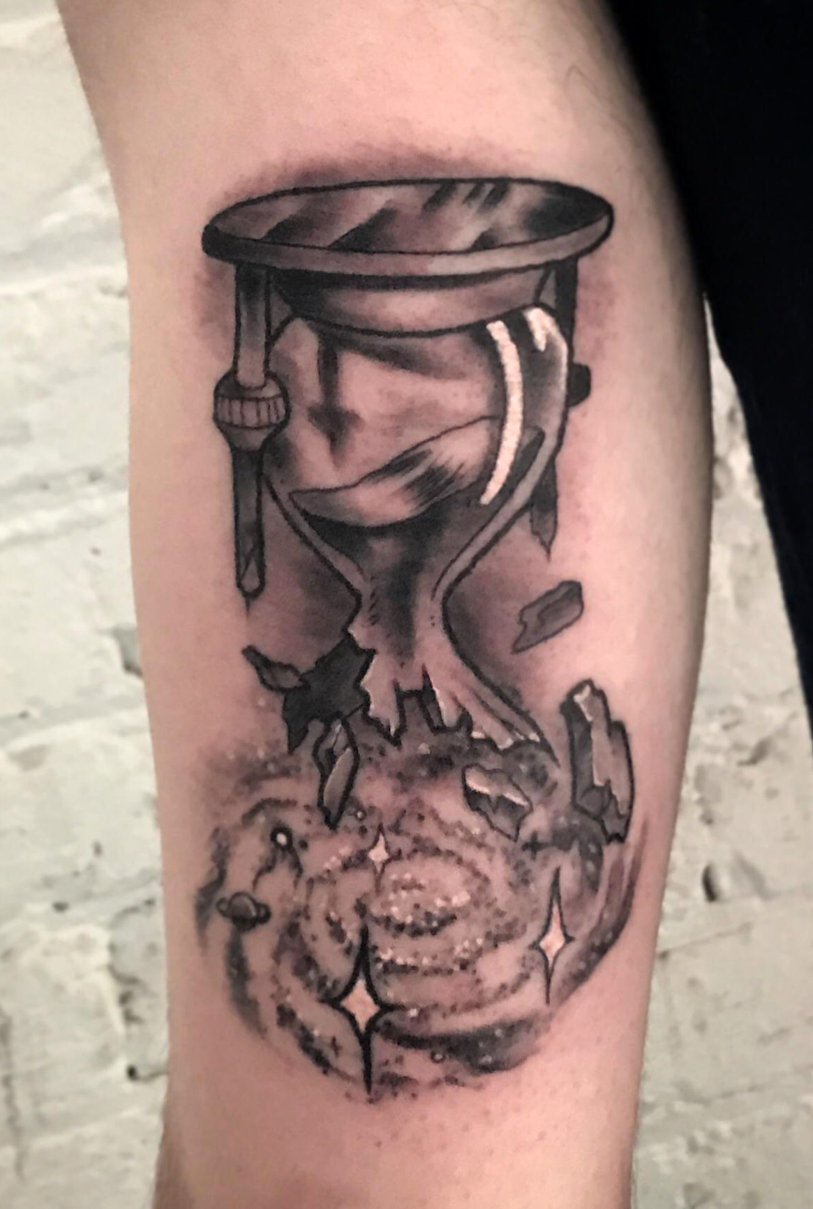 Hourglass and galaxy. By Matt at supergenius tattoo. Seattle,WA
