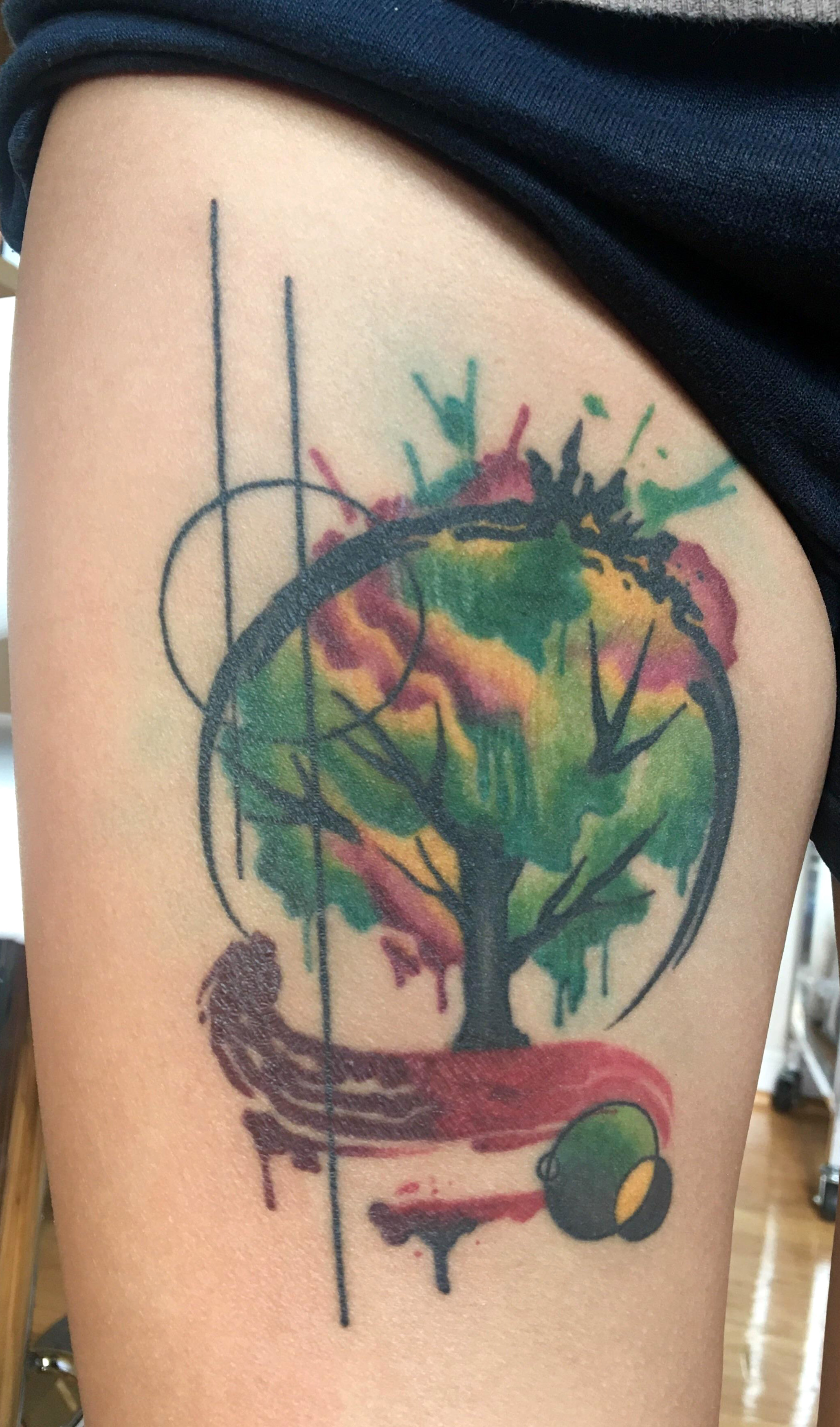 Tree tattoo to celebrate life and cover self harm scars. By Nick Glavan of Beelistic, Cincinnati OH