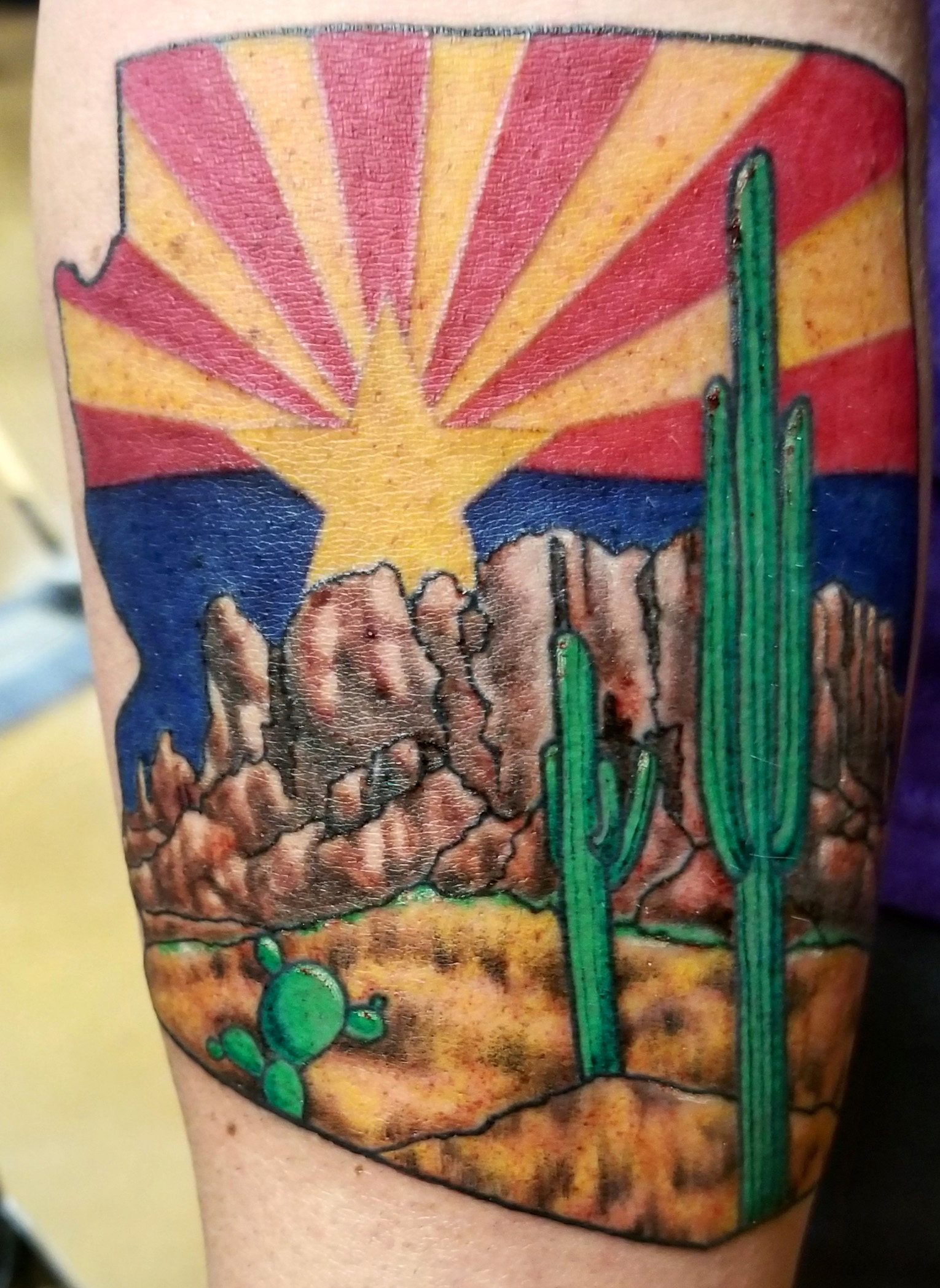 Cactus tattoo. Showing some Arizona pride. Done by Cris at Salt and Light Tattoo in Chandler,AZ