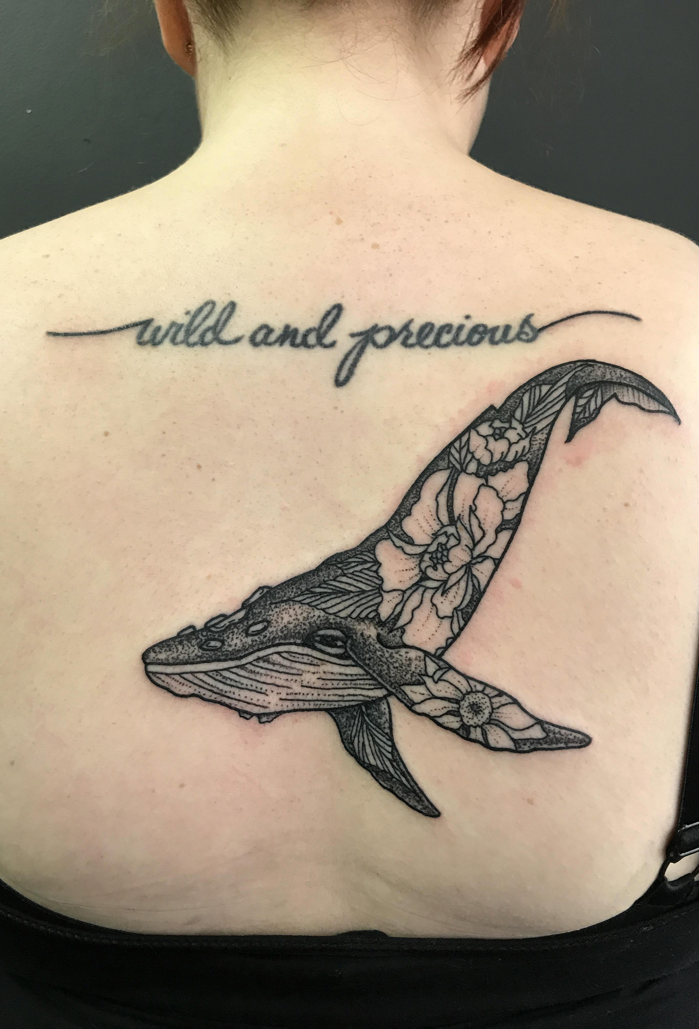 Floral whale tattoo by John Cheetham @ Old Town Tattoos in Edinburgh, Scotland