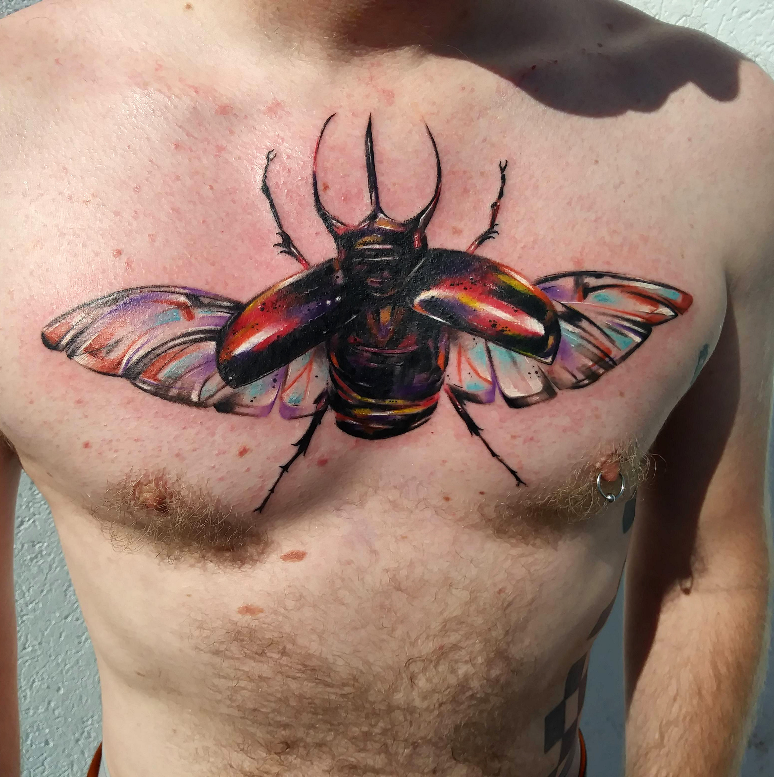 Beetle tattoo by Cheese at Dandyland in San Antonio, TX